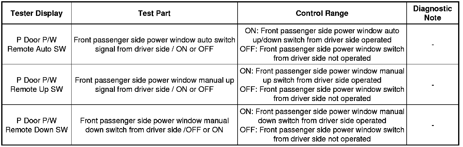 * When the power window regulator master switch assembly, power window regulator switch assembly and power window regulator motor assembly is reinstalled or replaced, the power window control system must be initialized Programming and Relearning.