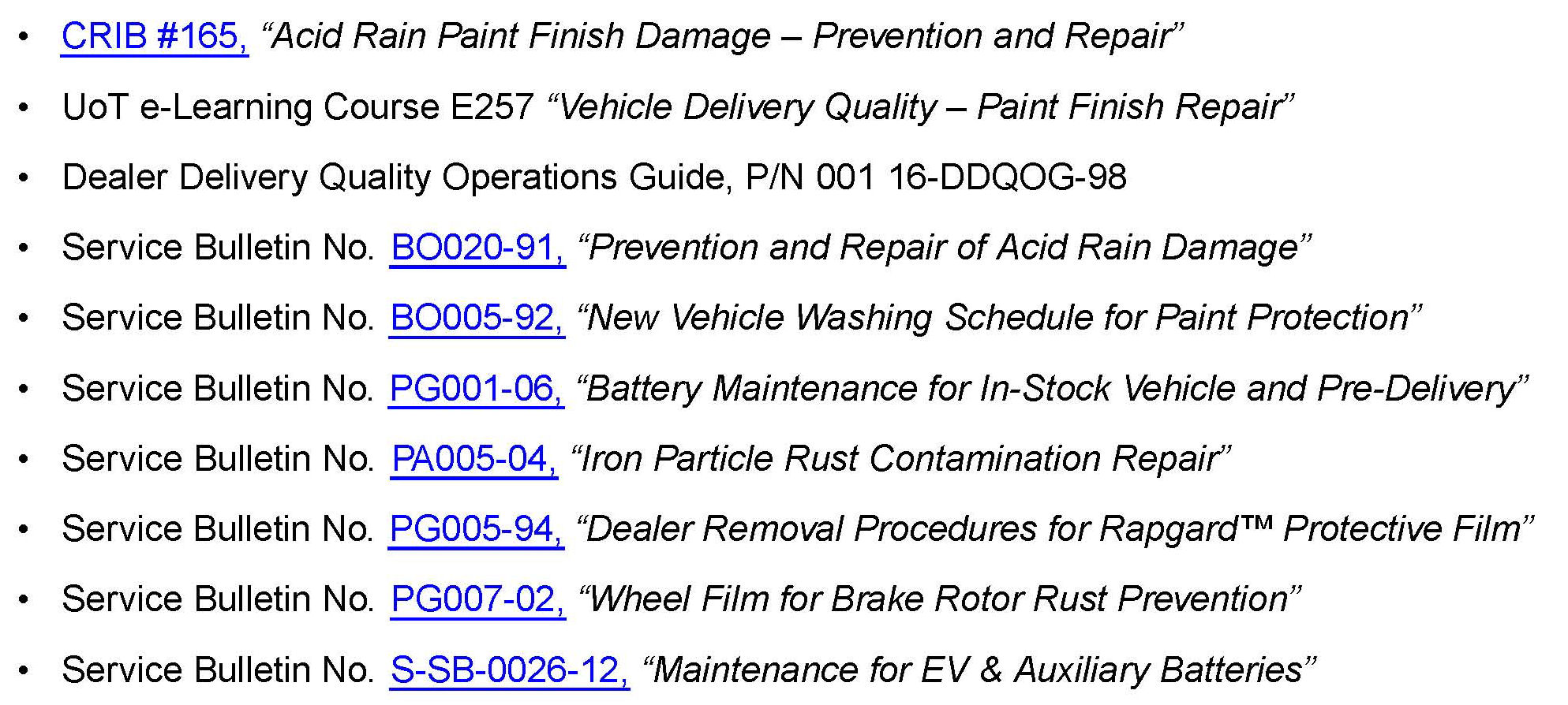 Listed below are additional resources, which will help you with vehicle receipt, inspection, and storage procedures.
