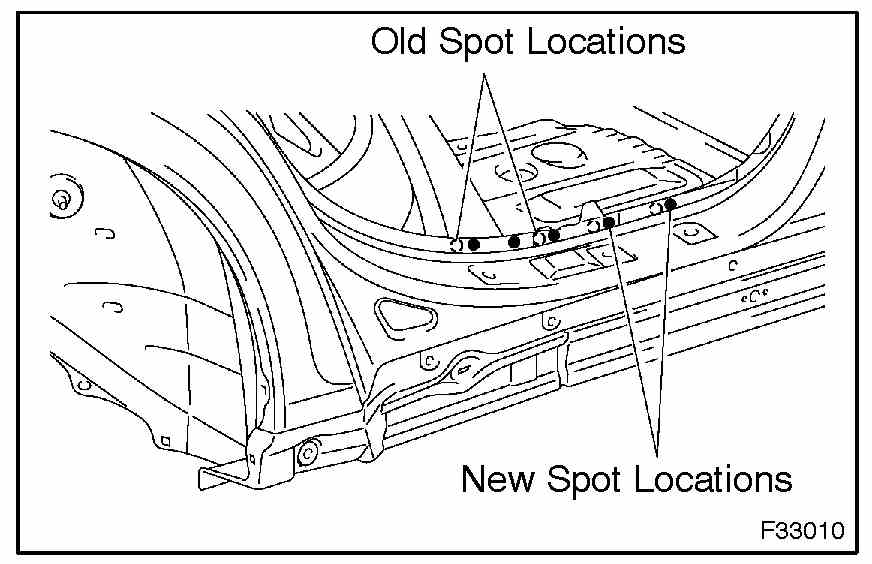 NOTICE: Inspect the welds after spot welding. For points with insufficient weld strength join the panels using plug welds.