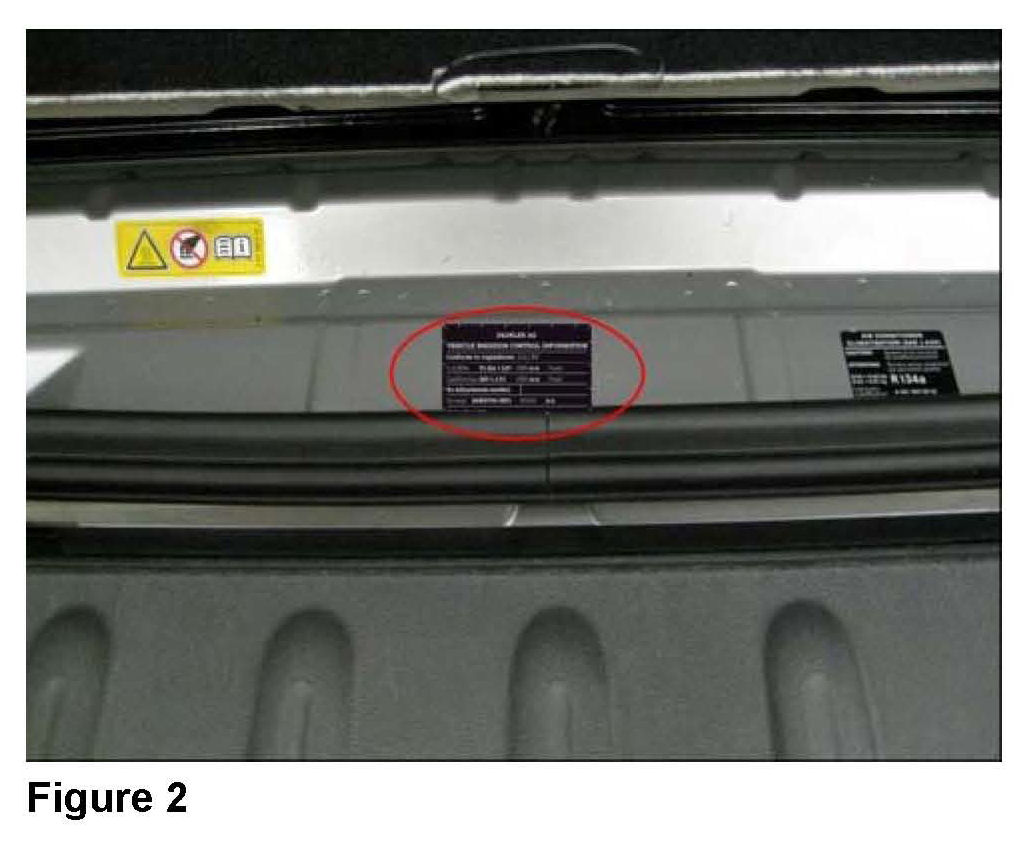 4. Affix new VECI label (circled, Figure 2) to body floor.