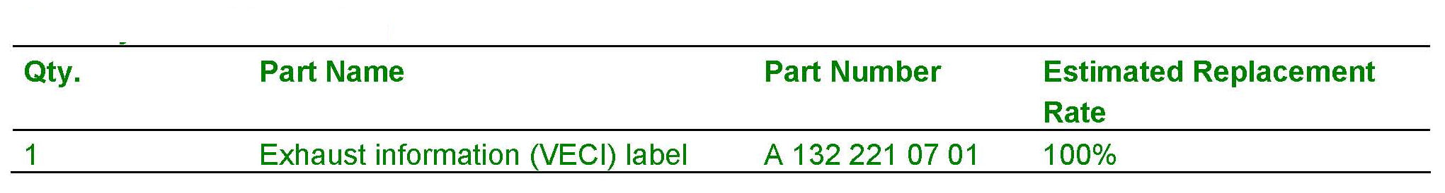 This Service Campaign has been initiated because Daimler AG (DAG) has determined that the Vehicle Emission Control Information (VECI) Label may not have been installed in the subject vehicles. Dealers will install a new VECI Label at the next workshop visit.