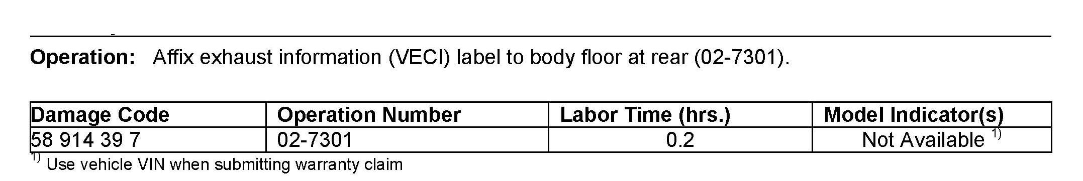^ The following allowable labor operation should be used when submitting a warranty claim for this repair: