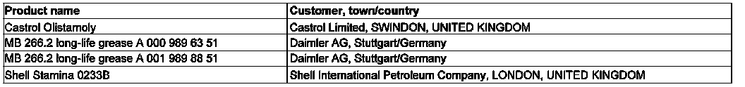 Commercial vehicles:Boots of propeller shafts, propeller shaft sliding pieces (blind plugs), injection-pump control, ring gear to flywheel, brake pad mechanism, splined brake shaft, brake camshaft bearing