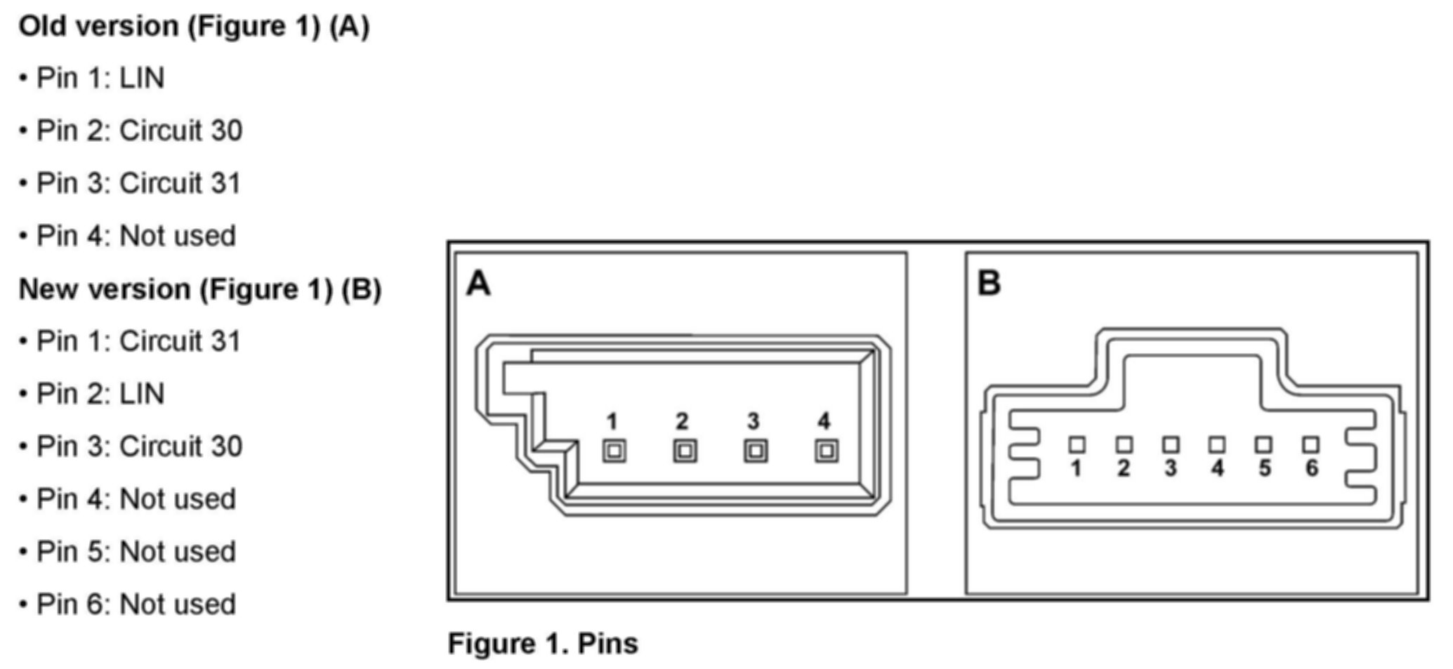 The as-built configuration of the microwave sensor has changed. Only the microwave sensor with 6-pin connection is now available from parts.