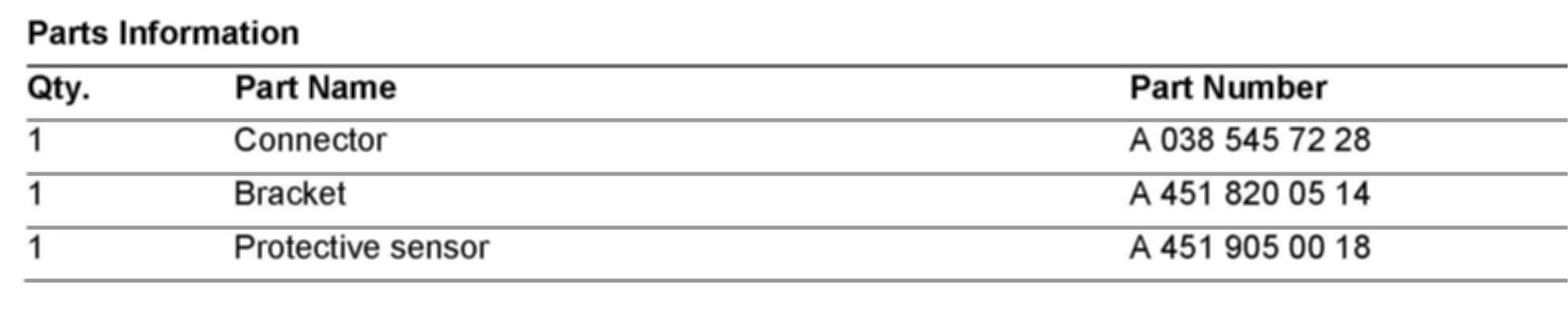 Therefore, for vehicles up to production date 3.20.2012, a new connector housing (A 038 545 72 28) with new holder (A 451 820 05 14) has to be used when replacing the microwave sensor.