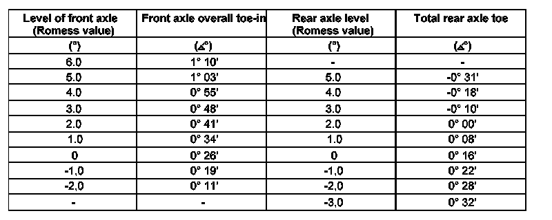 Different vehicle levels make it therefore necessary to determine the total toe specified value based on a total toe table as follows: