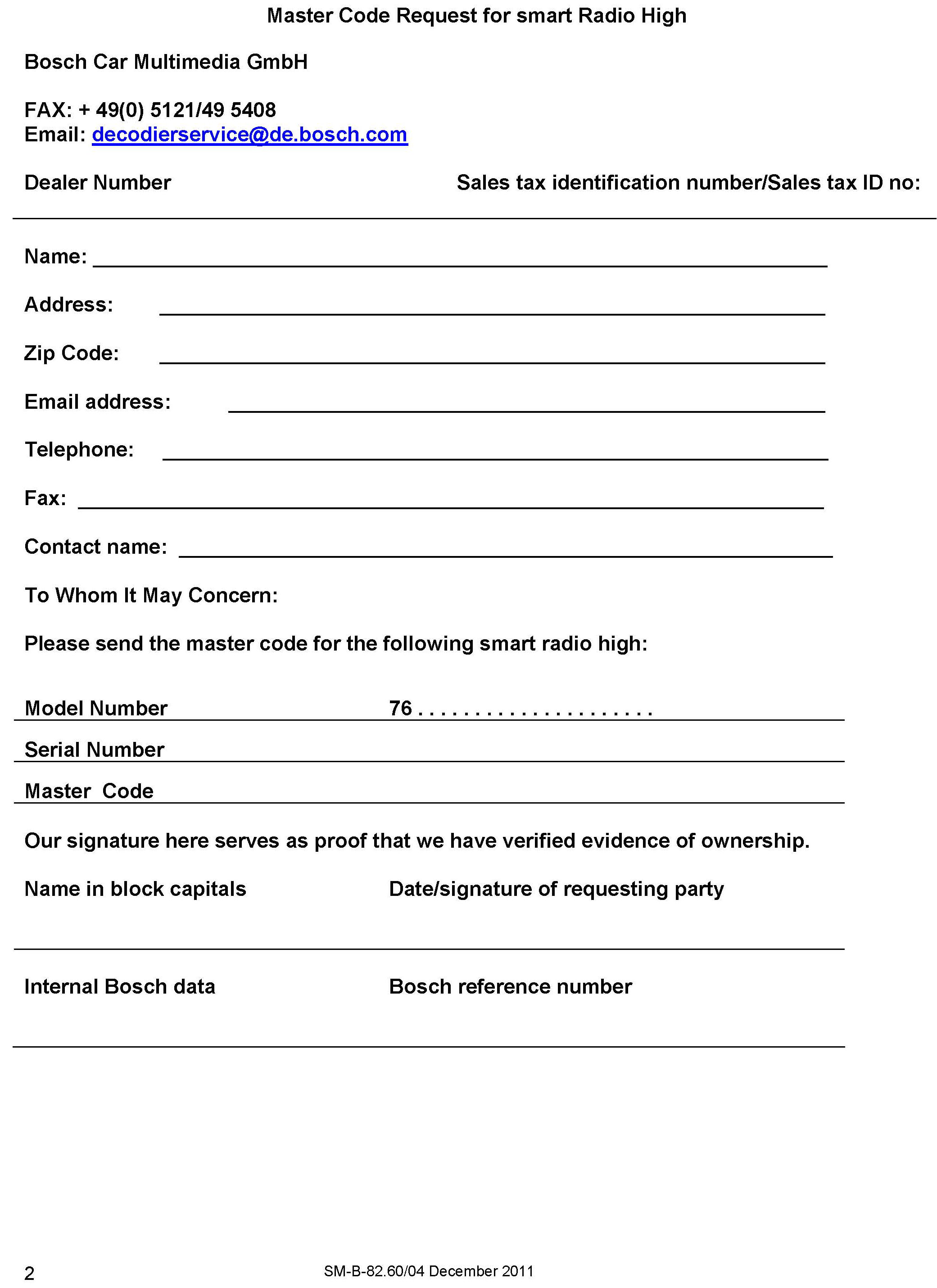 Please inform the customer accordingly. If the code is lost, a chargeable master code can be requested from the supplier via the form that follows. This master code then has to be entered in combination with the device's serial number in VeDoc.