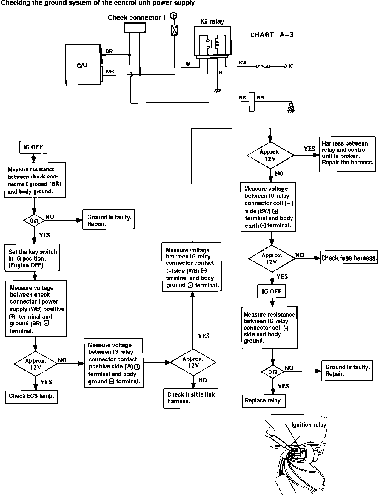 Fig.2 EGI system troubleshooting chart. Control unit ground check.: