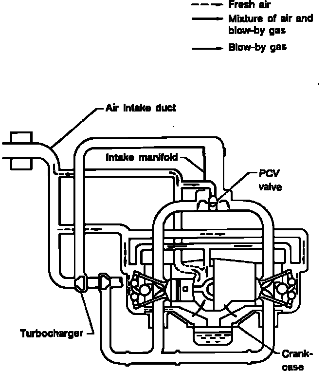 1. Check PCV hoses and connections for leaks and clogging. Hoses may be blown out with compressed air.