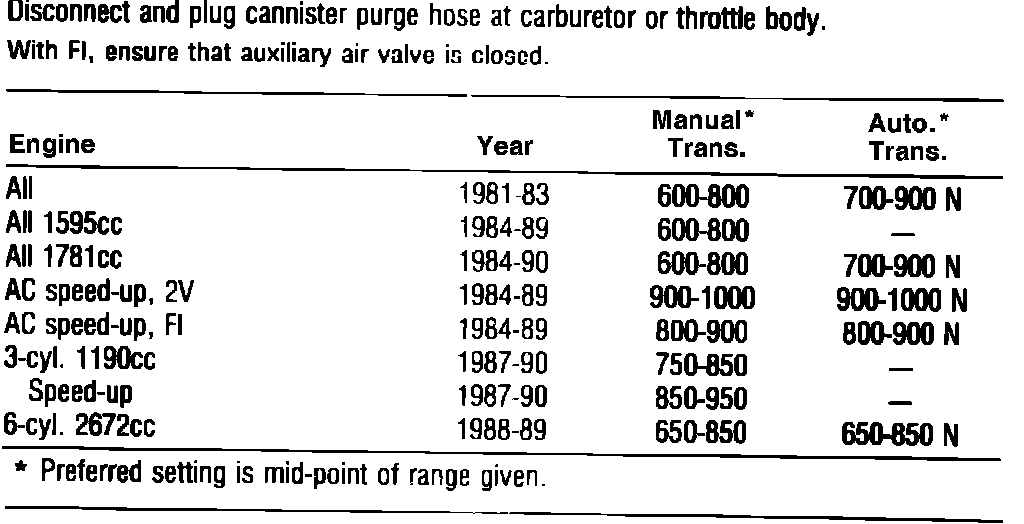 Fig. 5 Idle Speed W/O Computer Control Specifications: