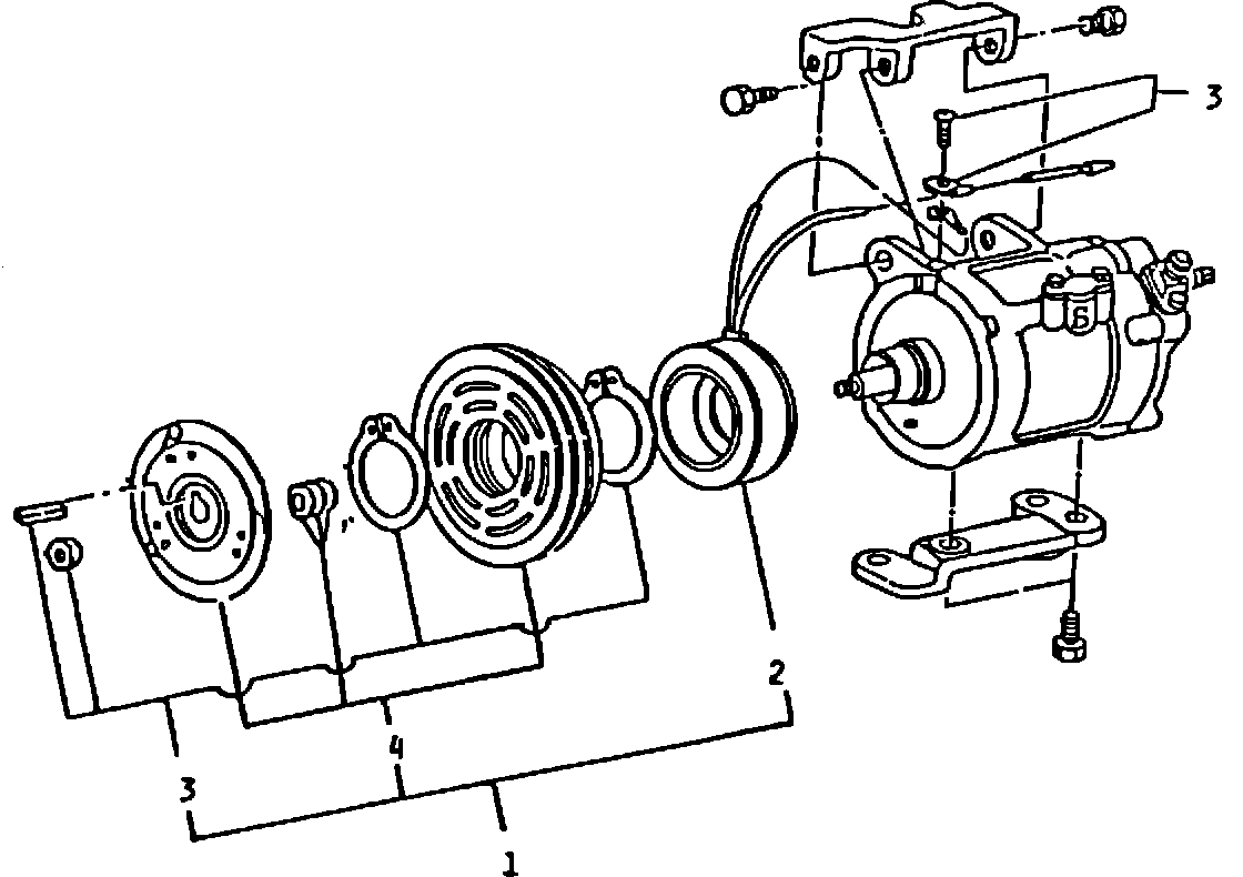 The compressor clutch parts breakdown is illustrated below in Figure 1.