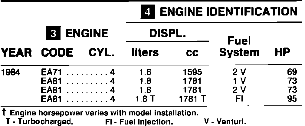 To identify an engine by the manufacturer's code, follow the four steps designated by the numbered blocks.