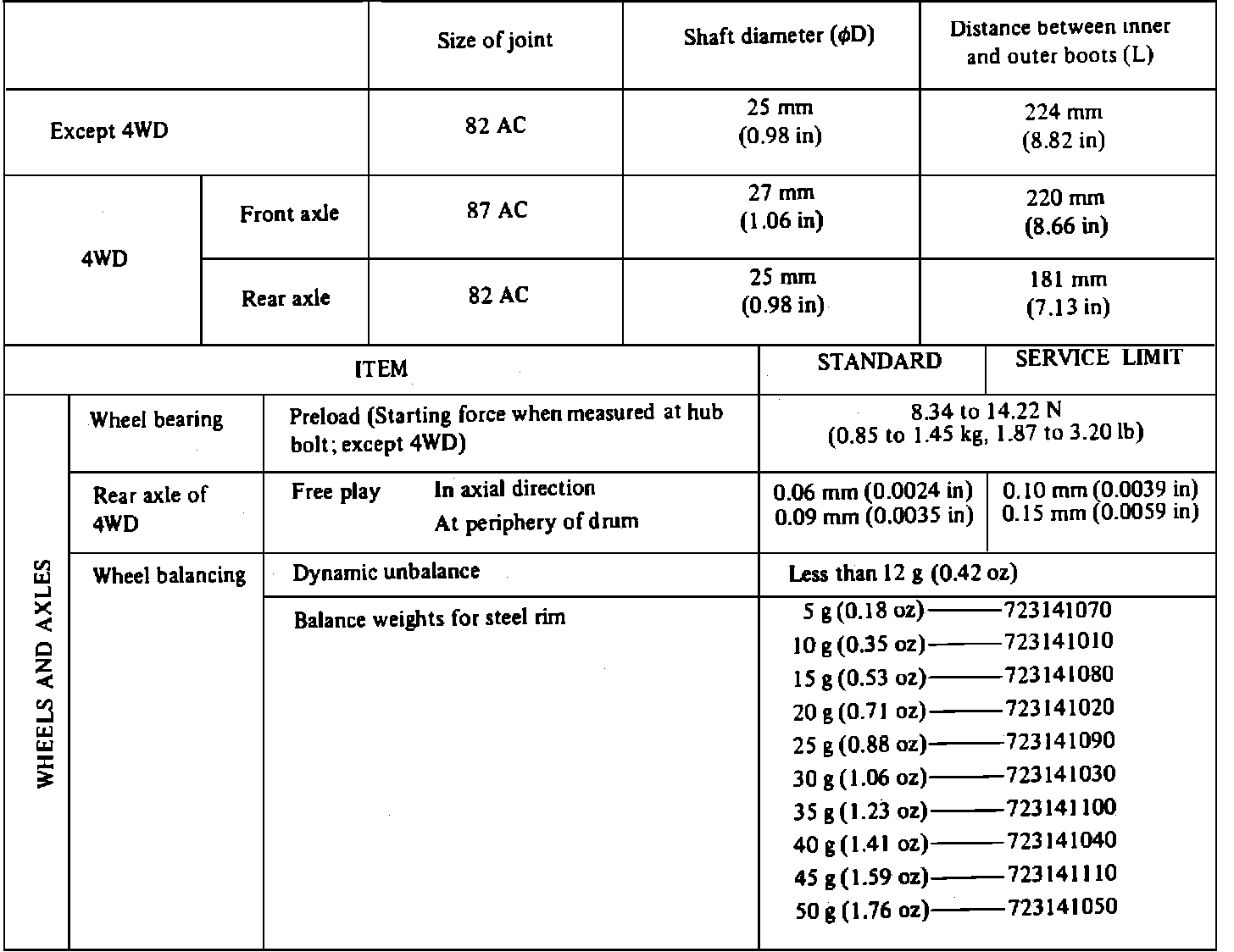 Drive Axle And Wheel Specifications: