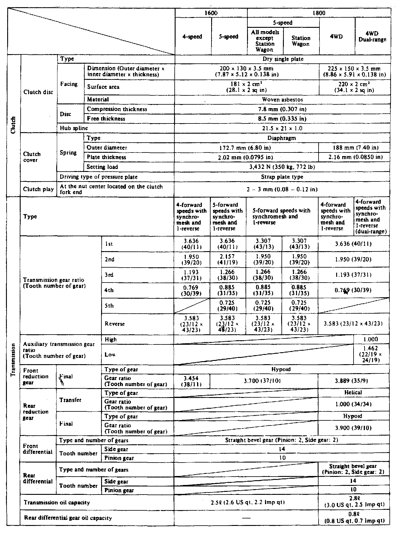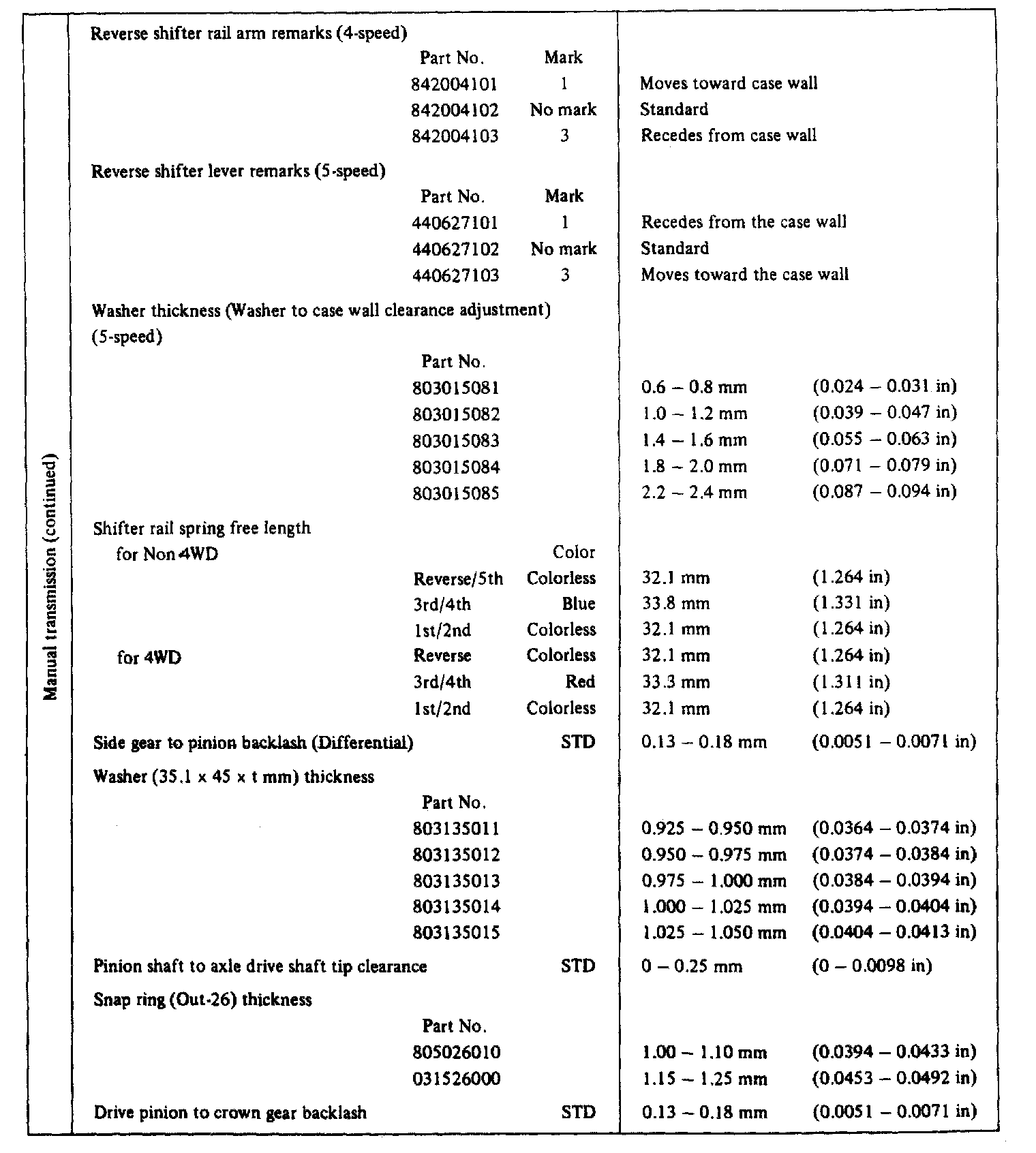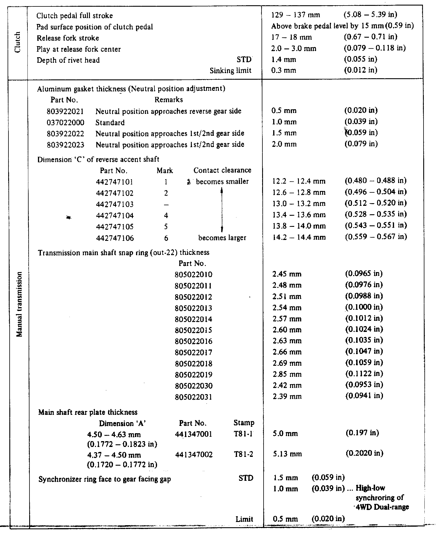 4/5 Spd M/T, Clutch & Transmission Clearances/Tolerances: