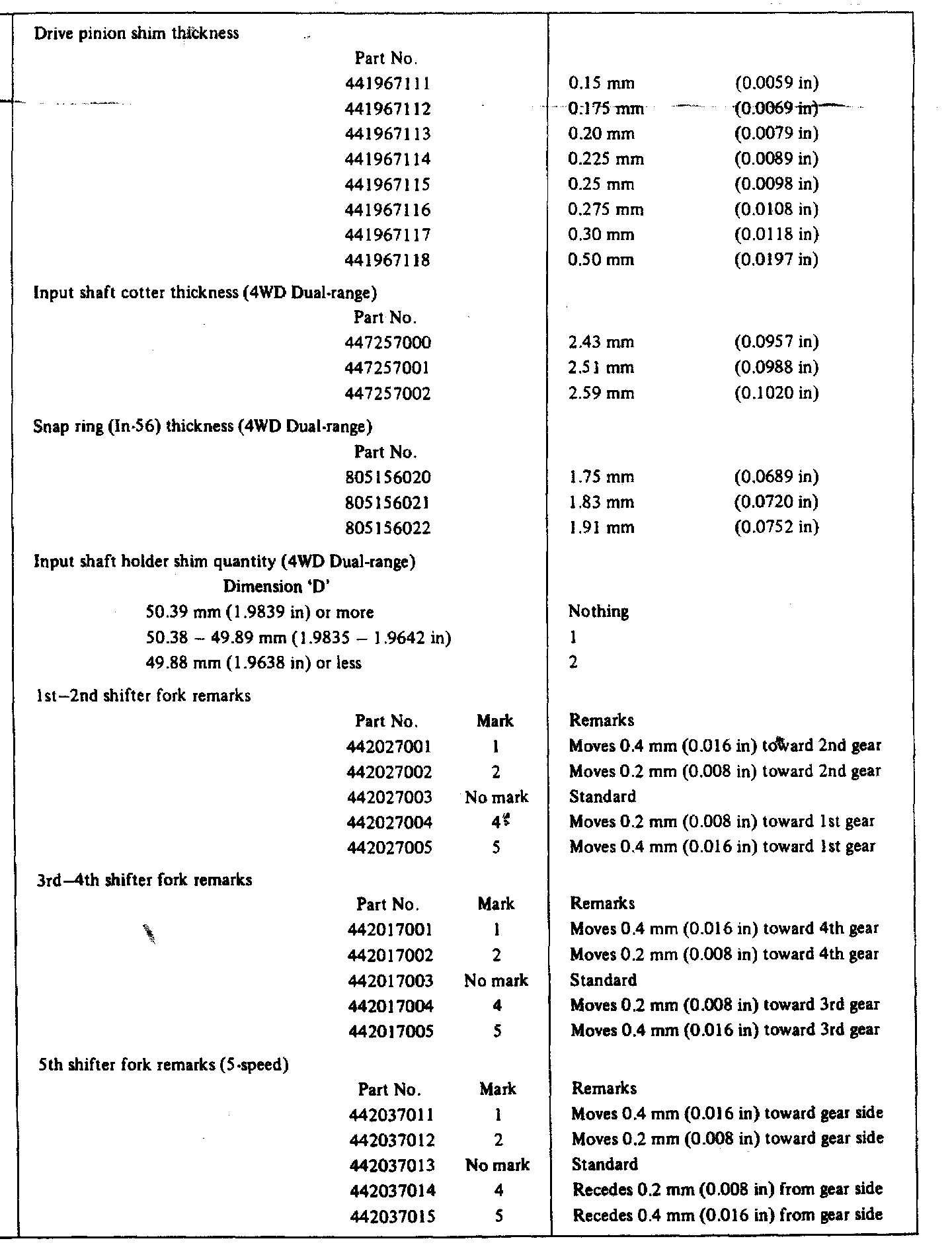 4/5 Spd M/T, Transmission Thickness & Remarks: