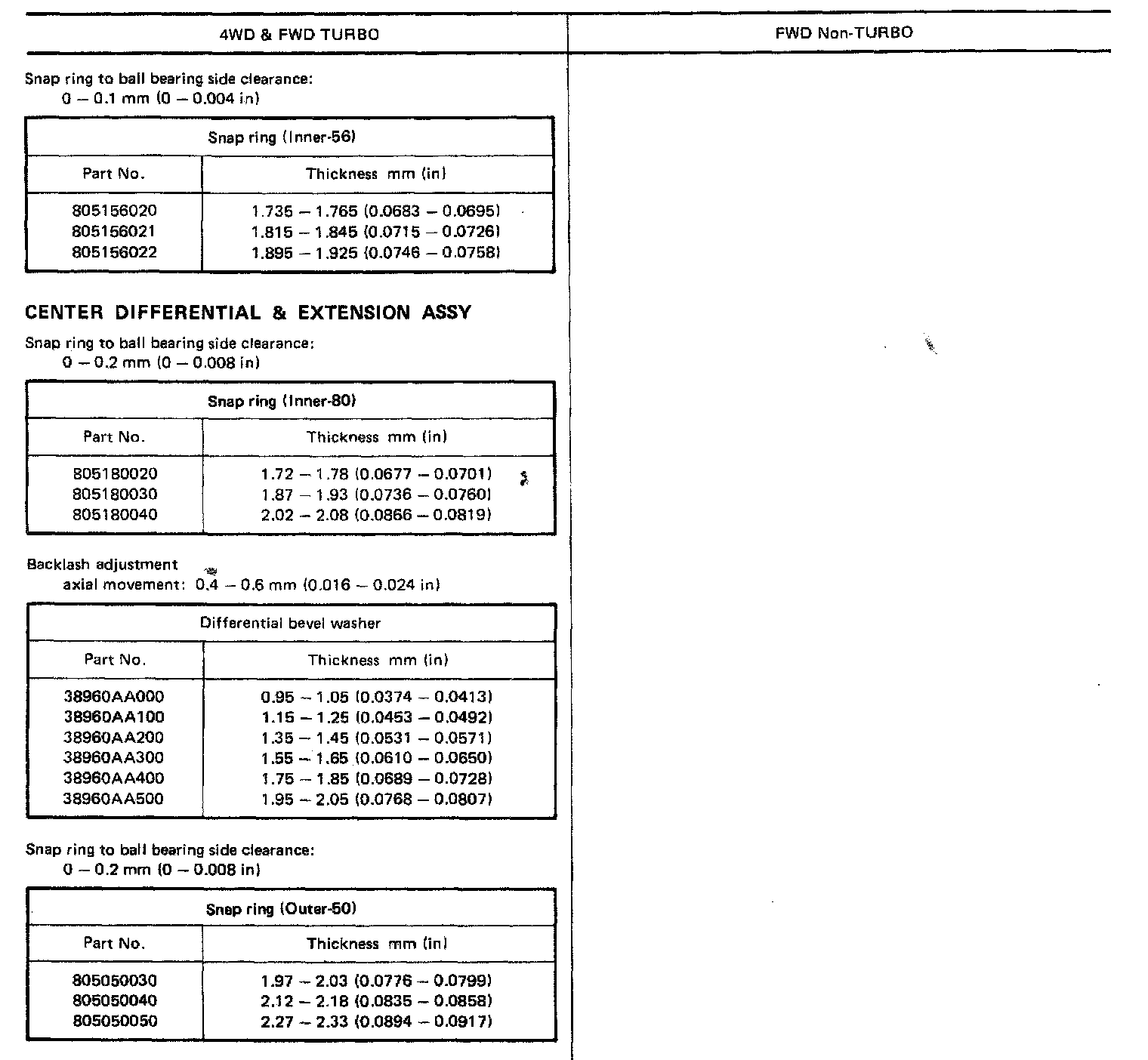 5-spd M/T, Transfer Case & Differential Service Data: