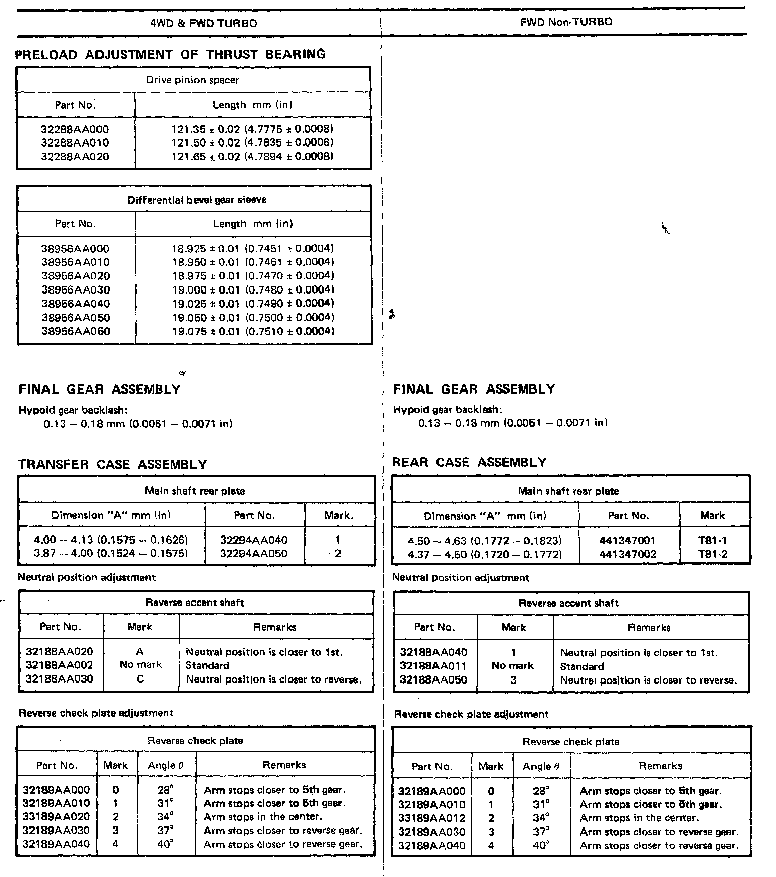 5-spd M/T, Transmission & Transfer Case Service Data: