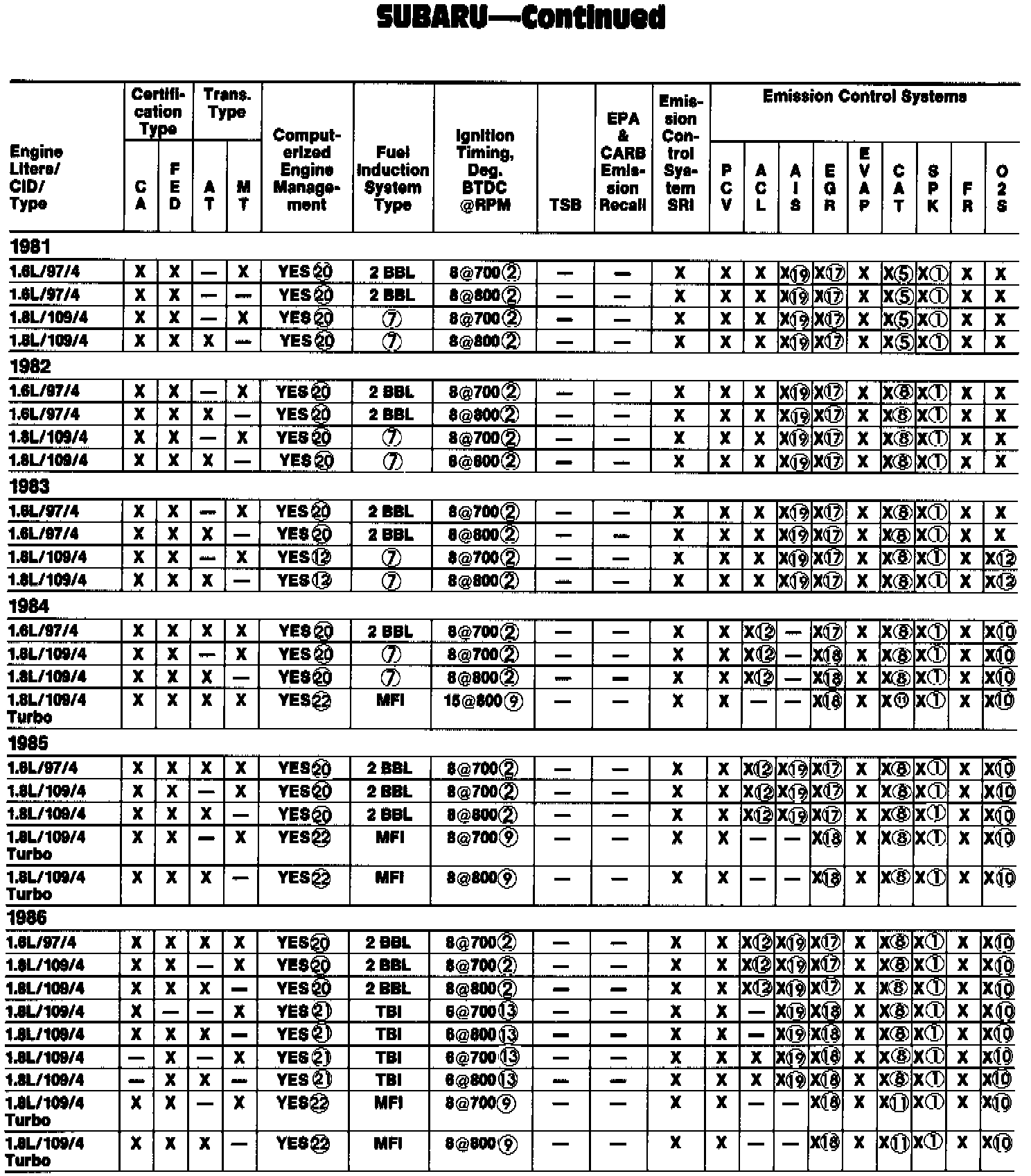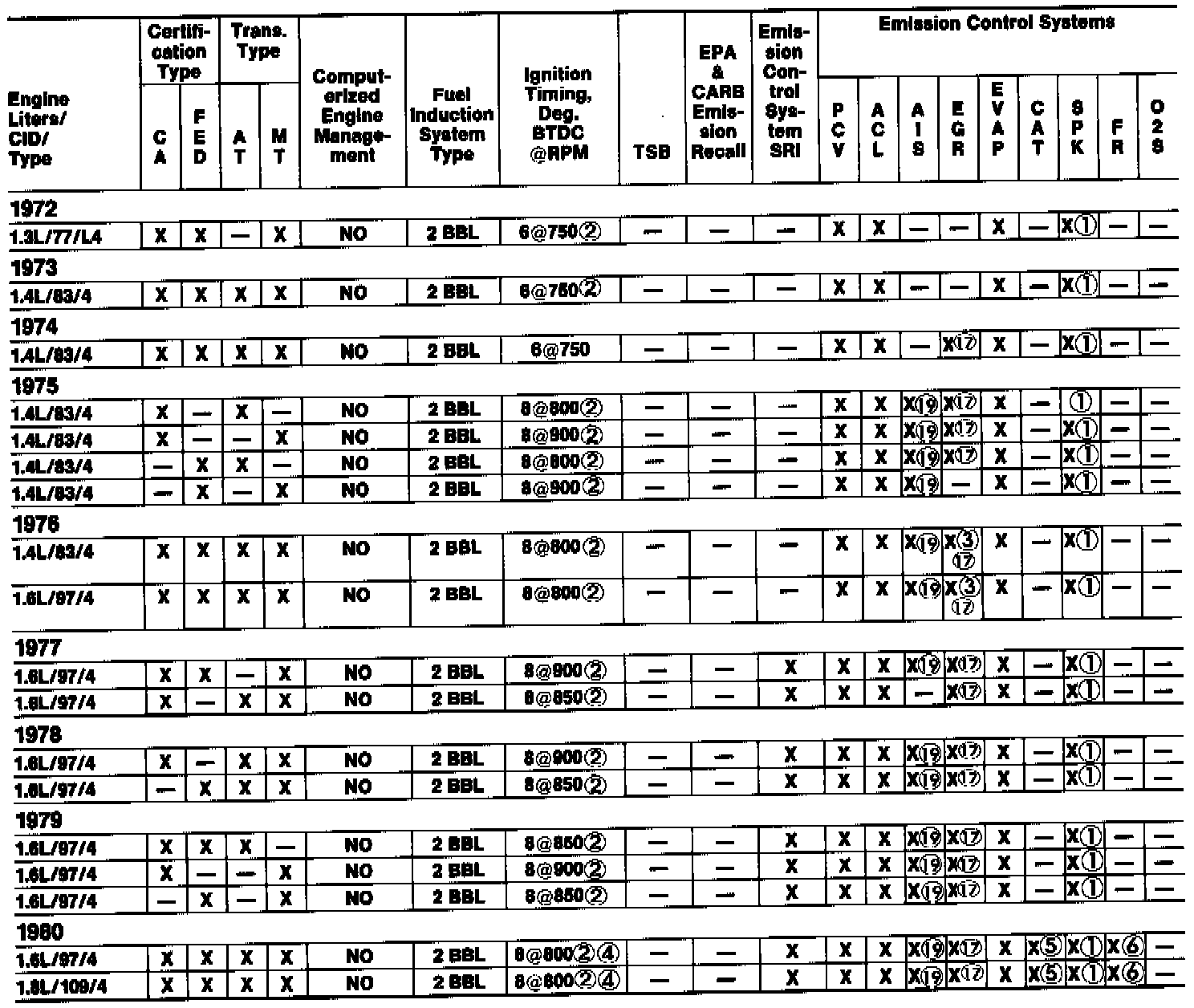 5 - Type, OC; number of catalytic converters, 1. FED Hatchback STD & DL, Sedan DL & Hardtop DL only.