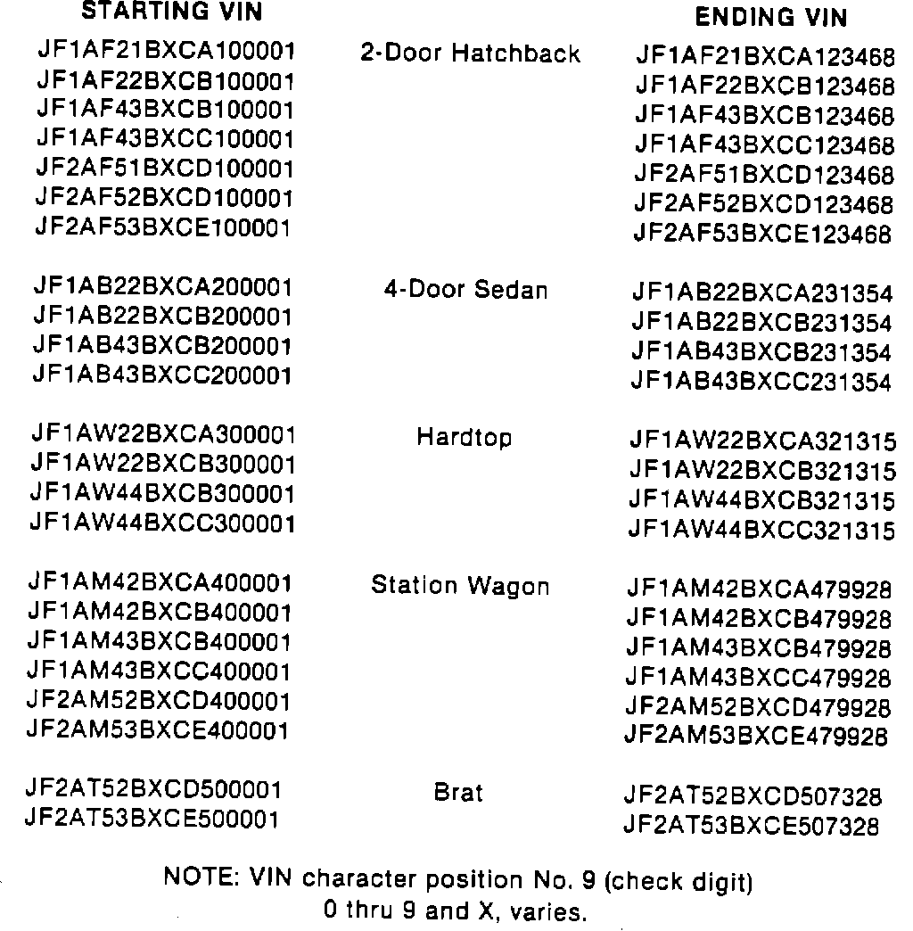 1982MY SUBARU SERVICE CAMPAIGN AZV.32 VIN INFORMATION