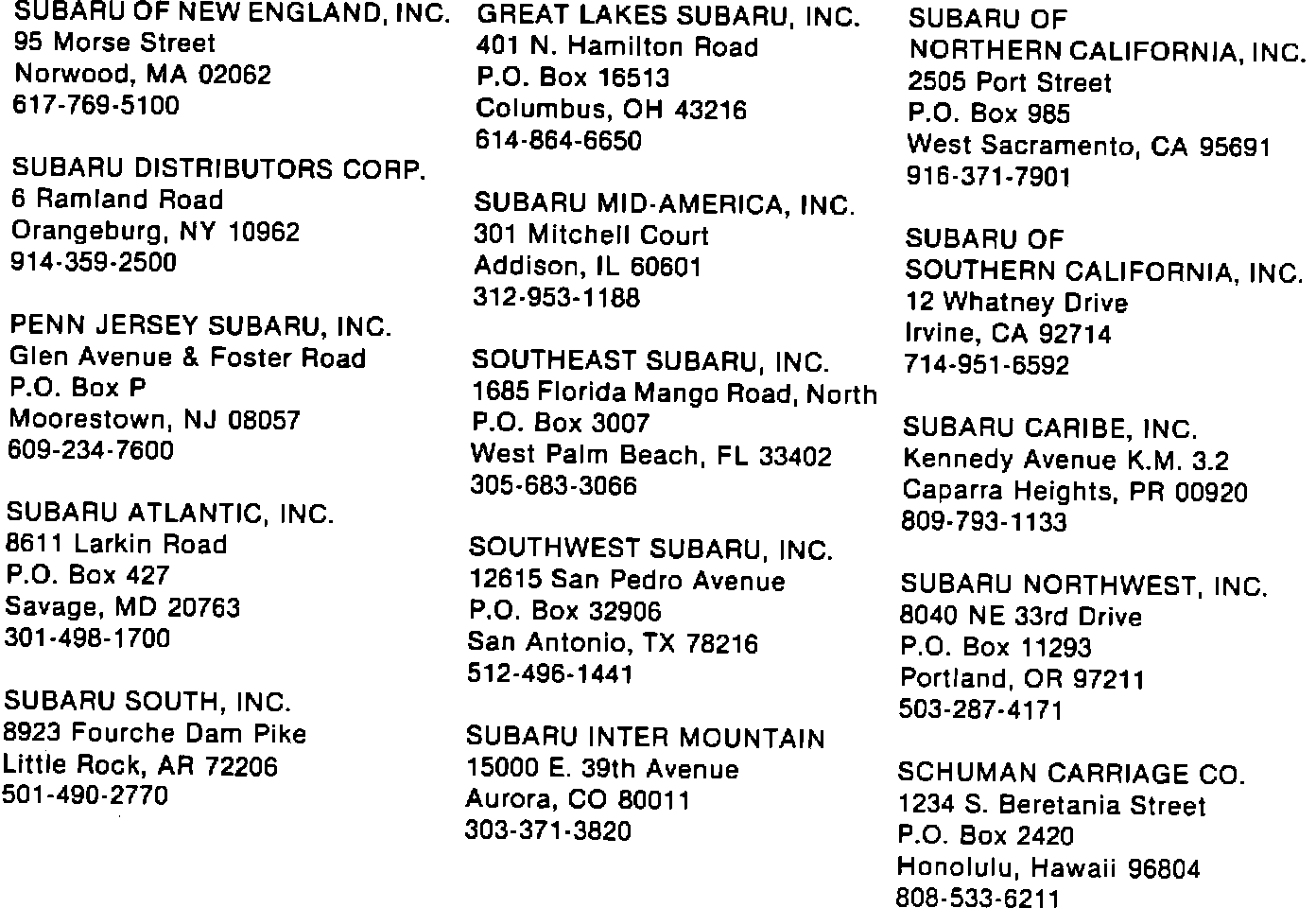 SUBARU DISTRIBUTORS