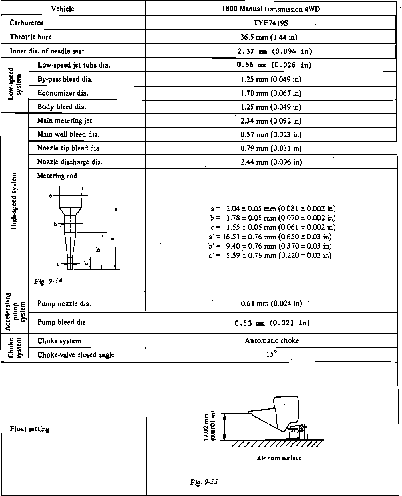 Carter-weber Carburetor Specifications: