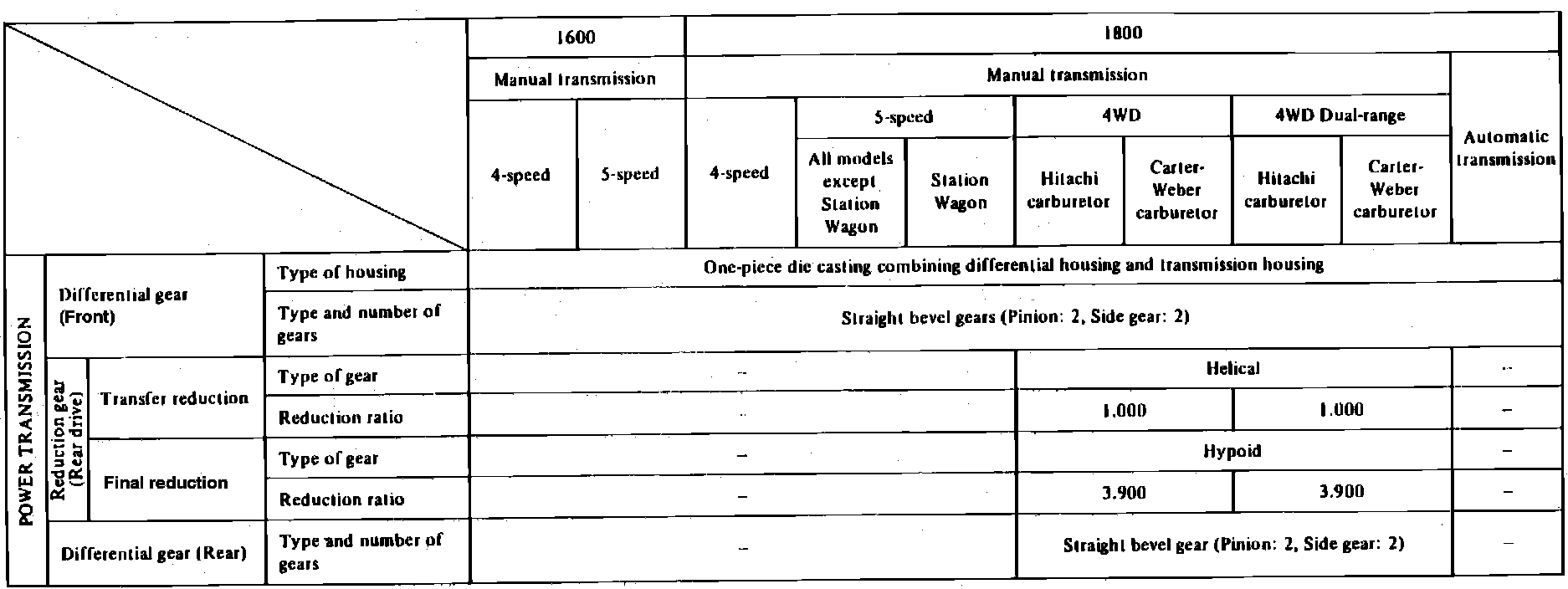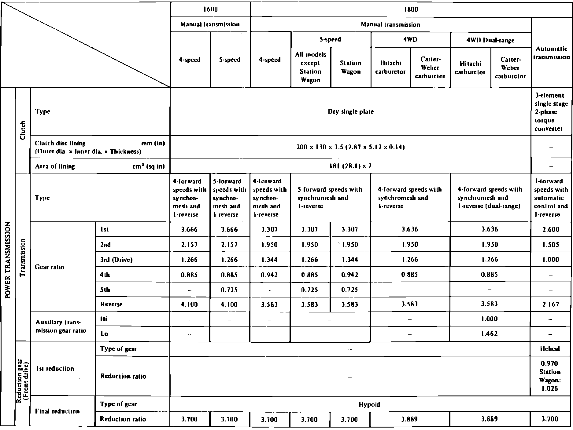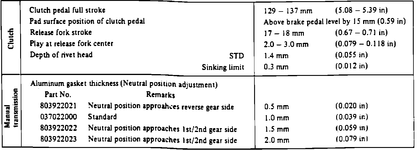 MANUAL TRANSMISSION SPECIFICATIONS