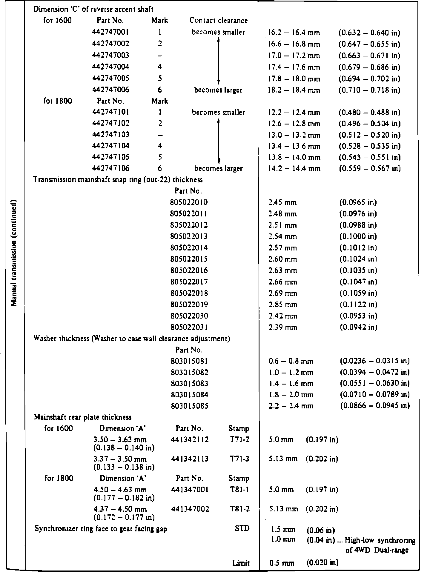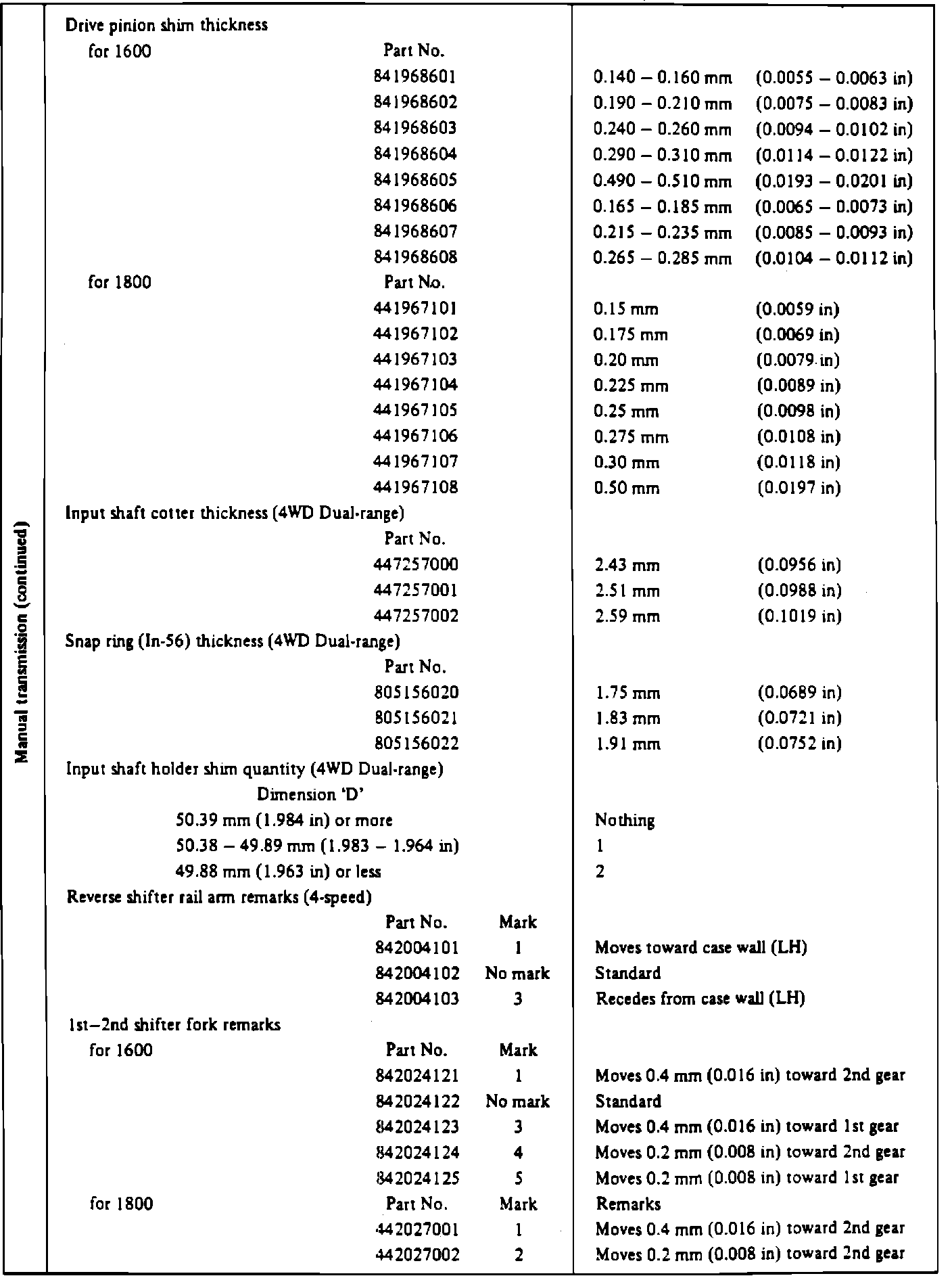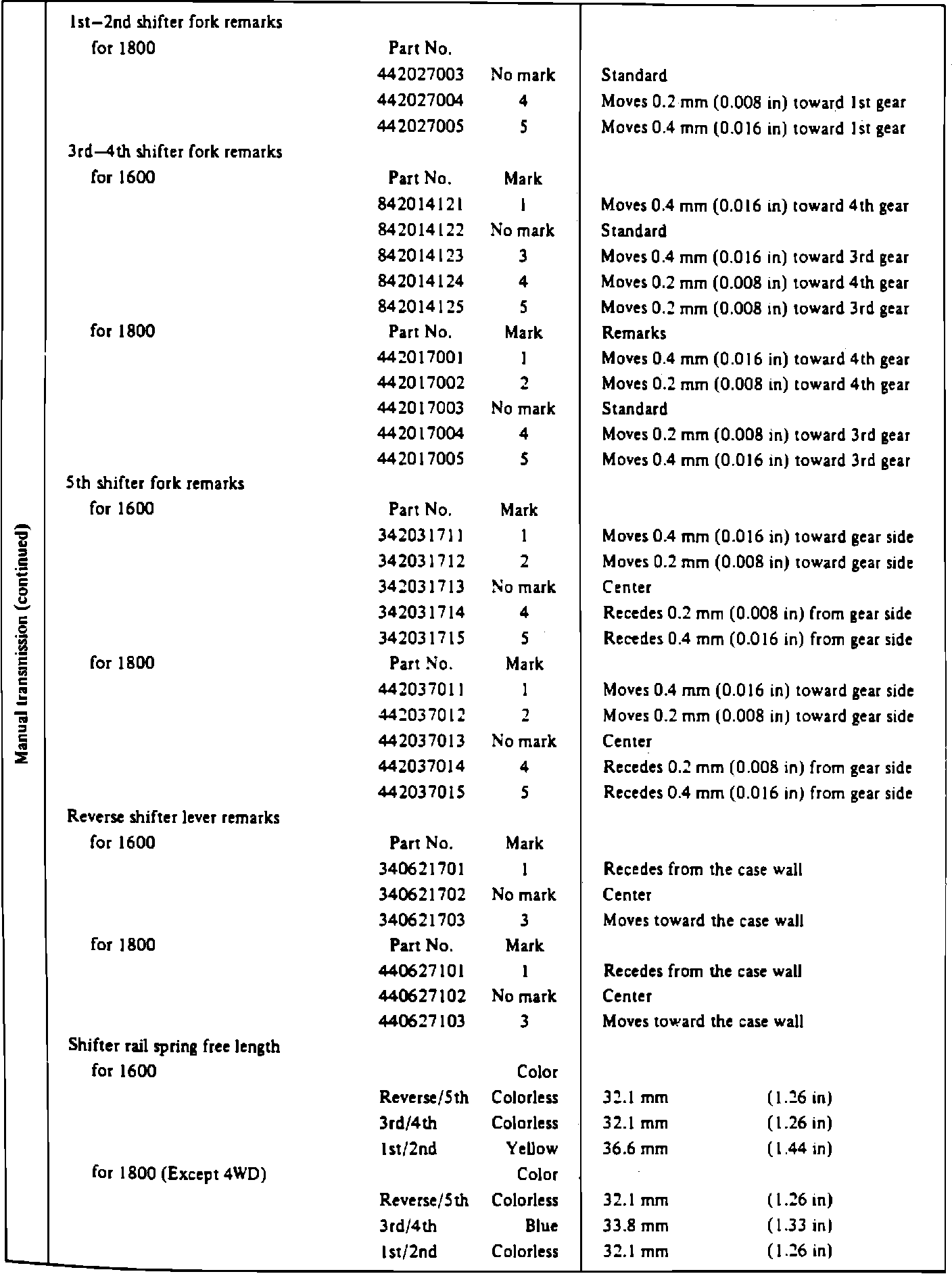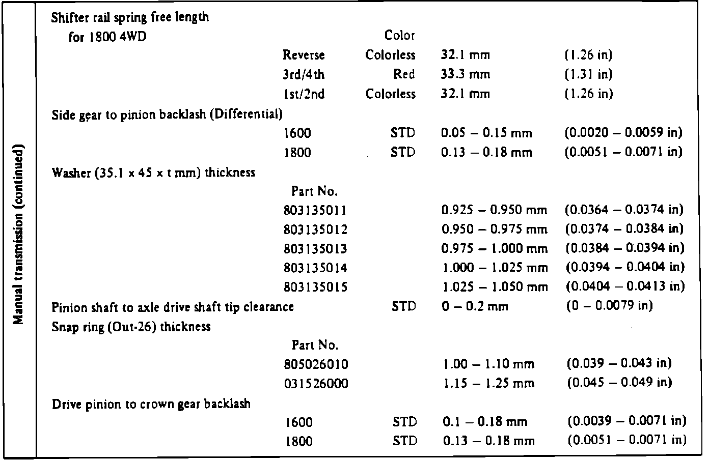 Manual Transmission Service Data (4 Of 5):
