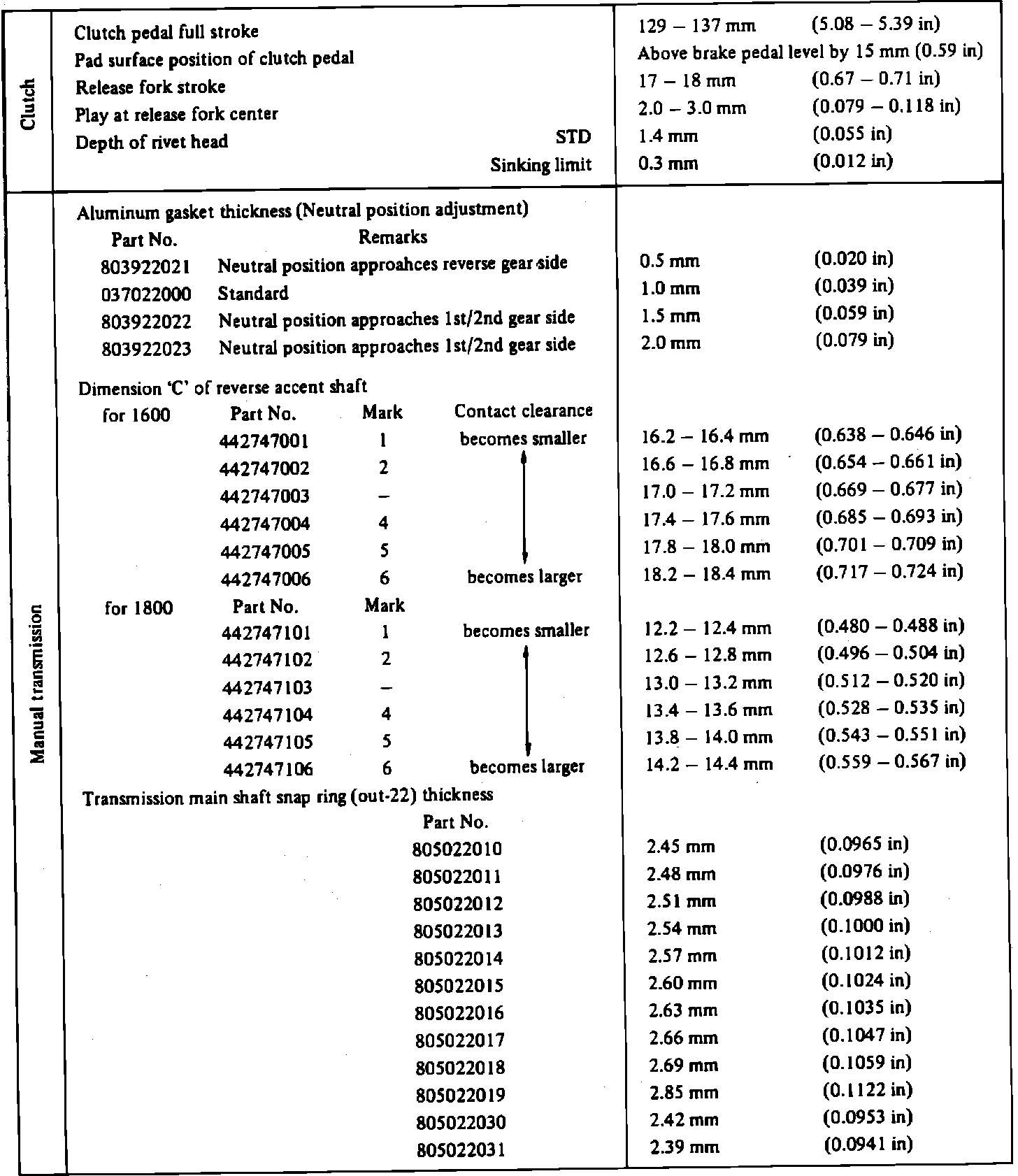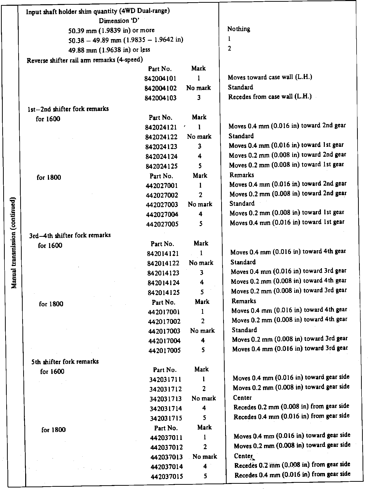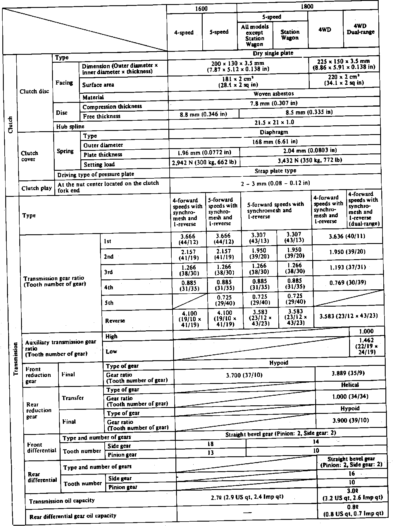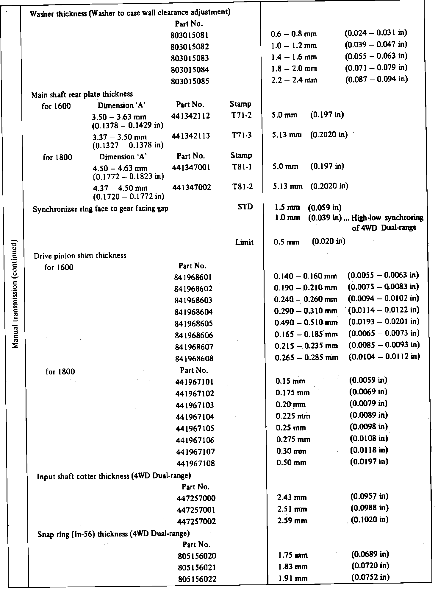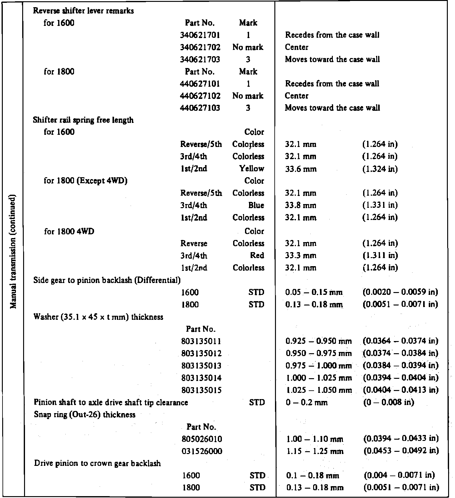 Manual Transmission And Differential Service Data (Part 4 Of 4):