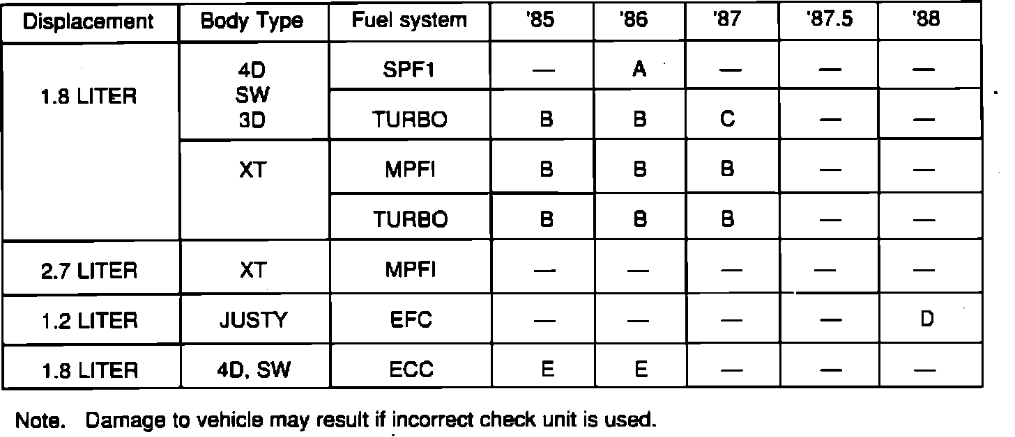 Check unit "D" (for 1987MY - EFC Justy)
