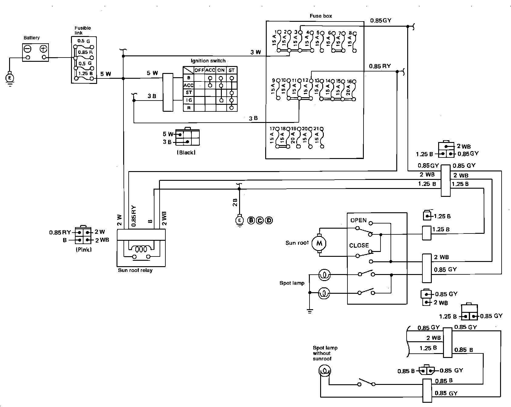 Fig. 100 Spotlight & Sunroof Wiring Circuit. Models Exc. XT: