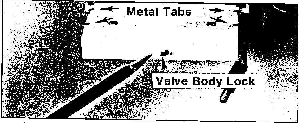 4. Carefully pry the metal tabs up to allow removal of the valve body. (Note: Valve bodies may have 2 or 4 metal tabs. Both are acceptable). Be sure the metal plate is held tightly against the mode panel, release the lock and remove the valve body. See figure 2.