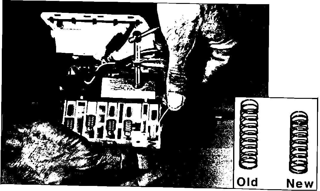 6. Install the modified spring, ensuring proper seating. Note that the modified spring is shorter than the original.