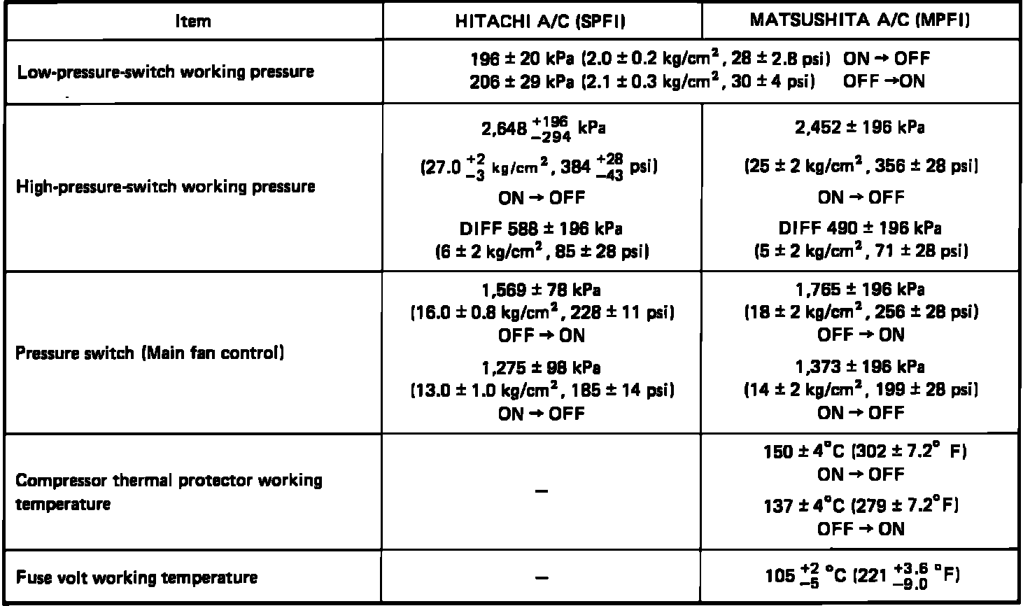 Pressure, Vacuum and Temperature Specifications