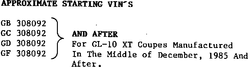 APPLICABILITY 1986 XT COUPE GL-10 MODEL DATE 07-16-86