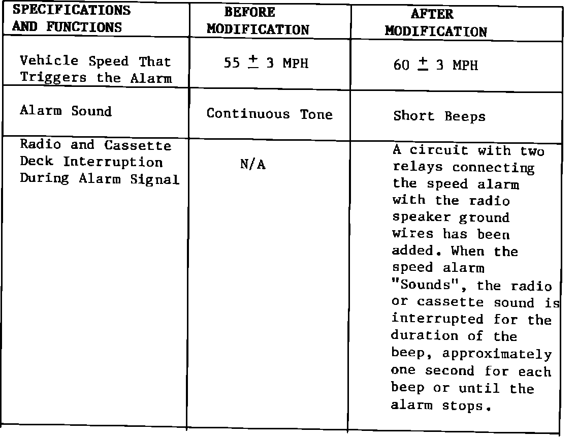 Speed alarm specifications and functions have been modified for XT Coupe GL-10 models manufactured in the middle of December, 1985 and after. See Figure 1.