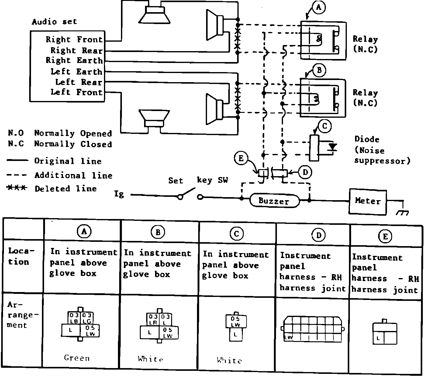 NOTE: THE TWO RELAYS ARE LOCATED IN THE INSTRUMENT PANEL ABOVE THE GLOVE BOX.