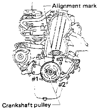 3) Turn the crankshaft pulley until the #3 piston is set at TDC.