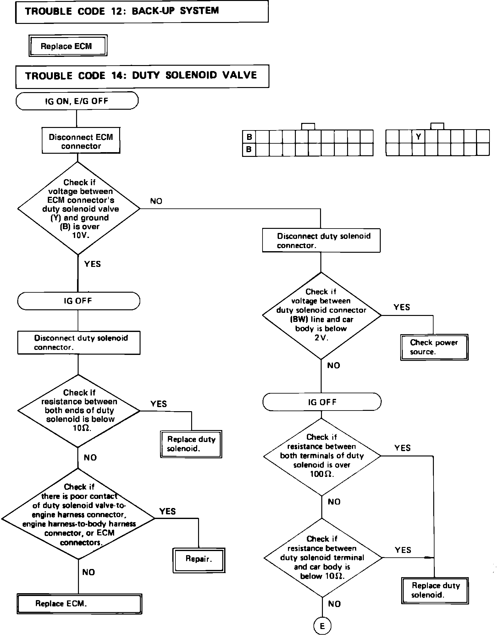 Fig. 27b Electronically controlled carburetor diagnostic chart. Trouble codes 12 and 14.: