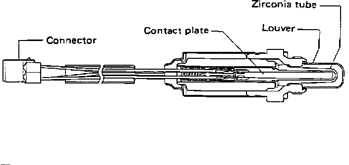 The exhaust gases reach the outer surface of the oxygen sensor tip via the openings in the protective sleeve. Ambient air reaches the sensor's inner surface via channels. The differance in oxygen content produces a voltage read by the ECU.