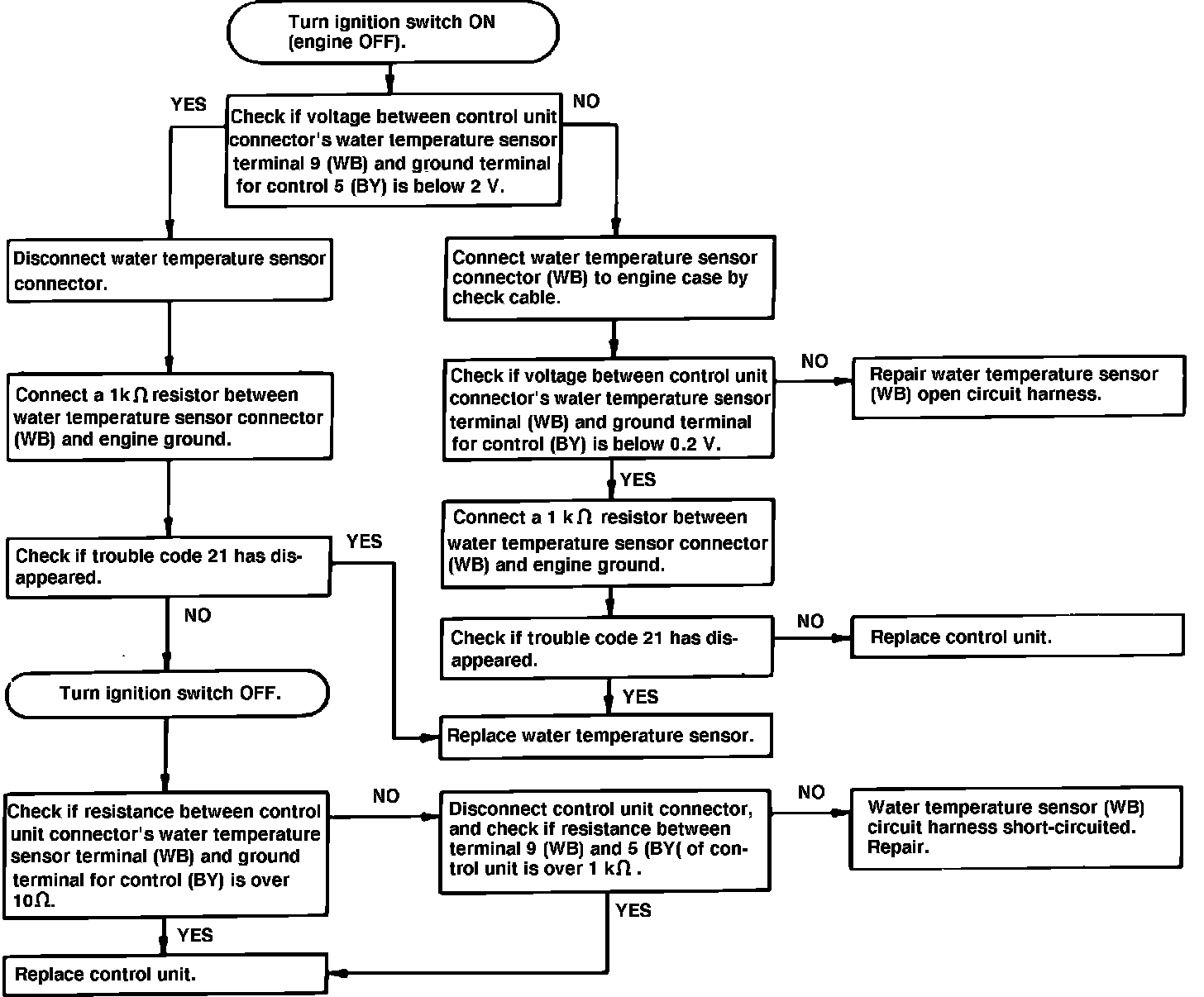 Fig. 45 Electronically controlled carburetor diagnostic chart. Water temperature sensor (trouble code 21).: