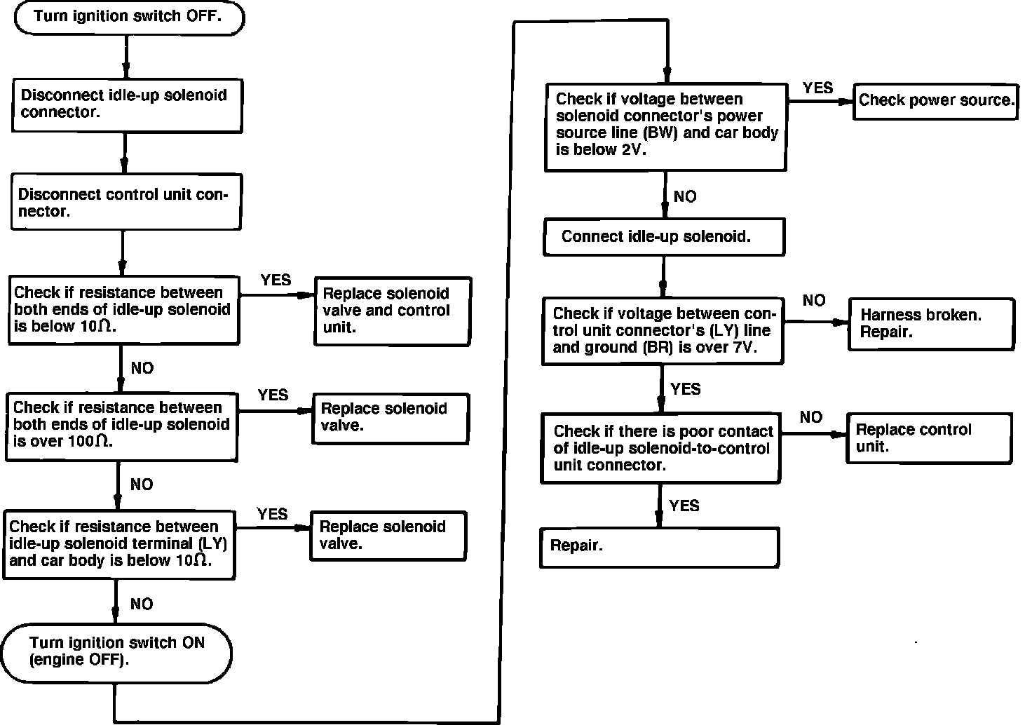Fig. 48 Electronically controlled carburetor diagnostic chart. Idle-up solenoid (trouble code 24).: