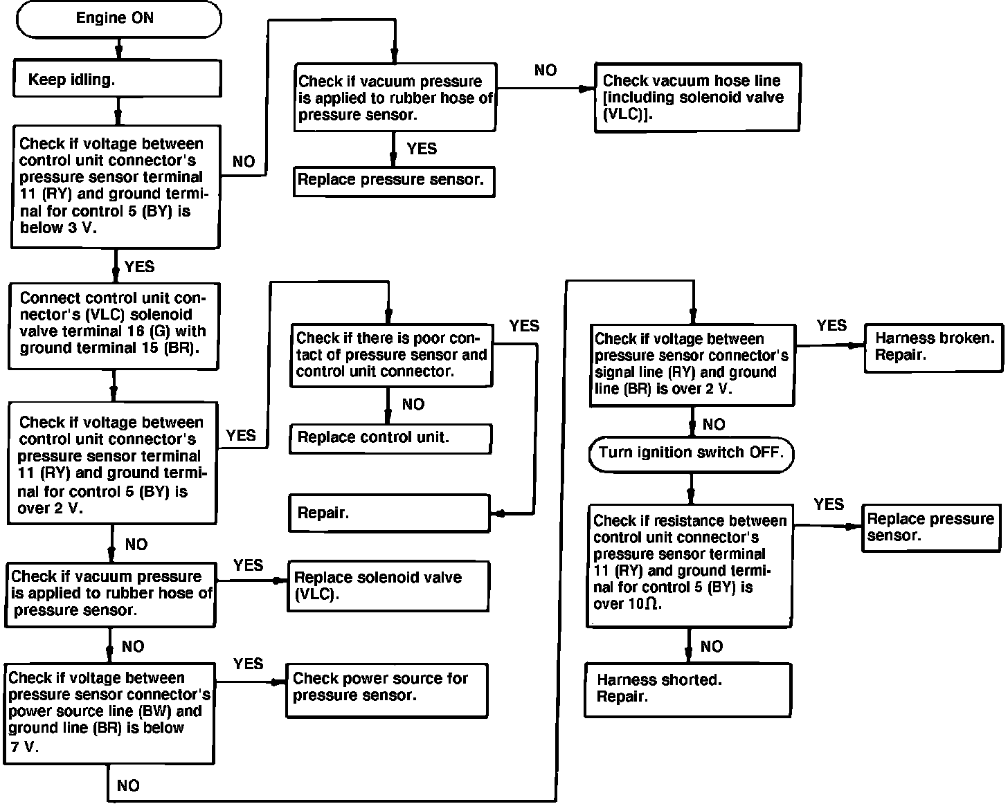 Fig. 47 Electronically controlled carburetor diagnostic chart. Pressure sensor (trouble code 23).: