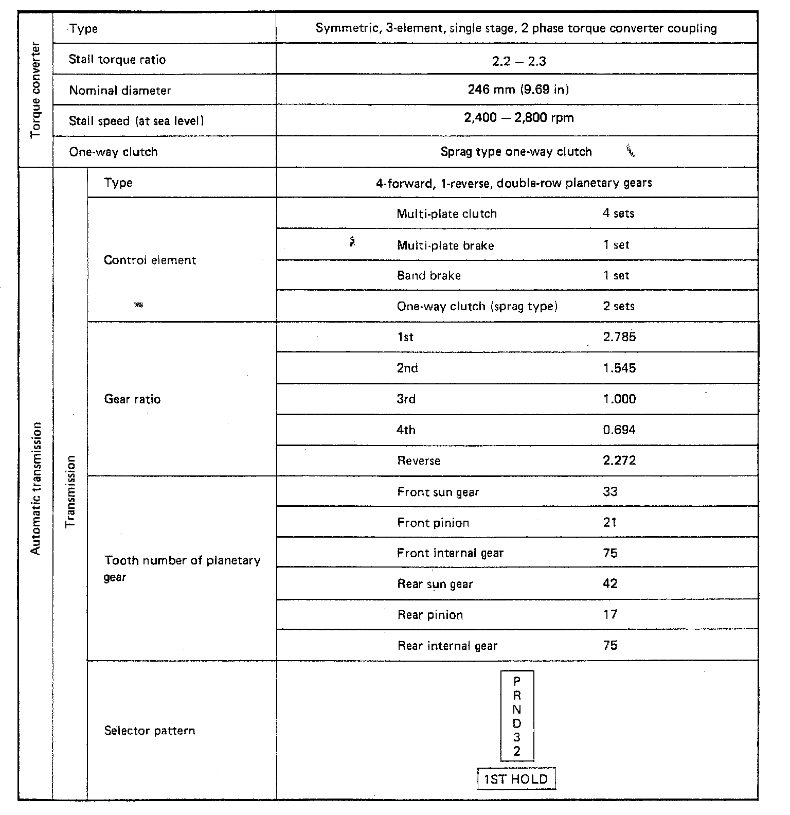 4-spd A/T, Transmission Service Data: