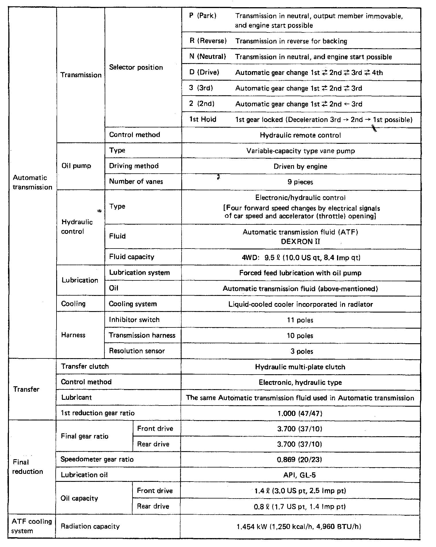 4-spd A/T, Transmission, Transfer & Final Reduction:
