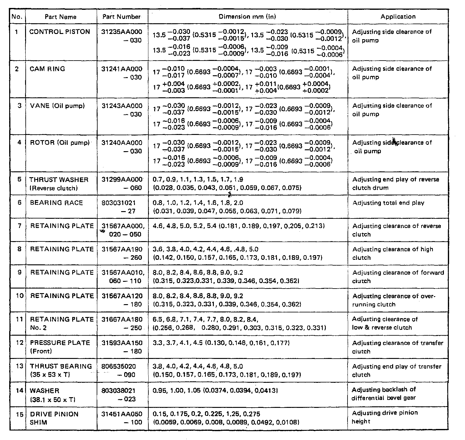 4-spd A/T, Transmission Adjustment Application:
