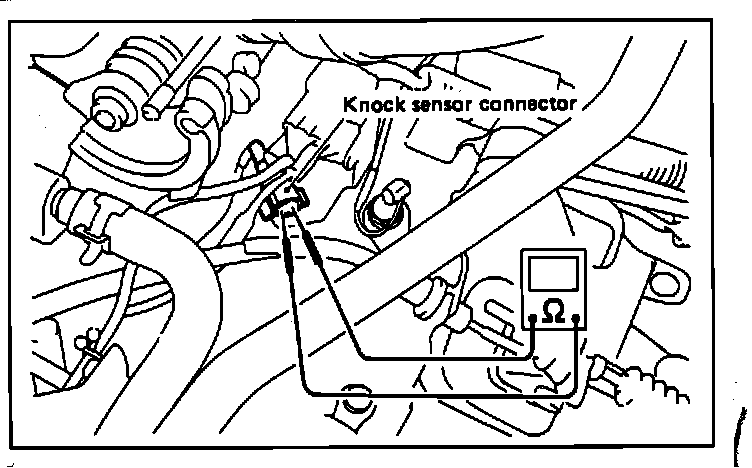 With knock sensor disconnected, measure resistance between sensor terminals and ground. It should read approximately 560K Ohms.