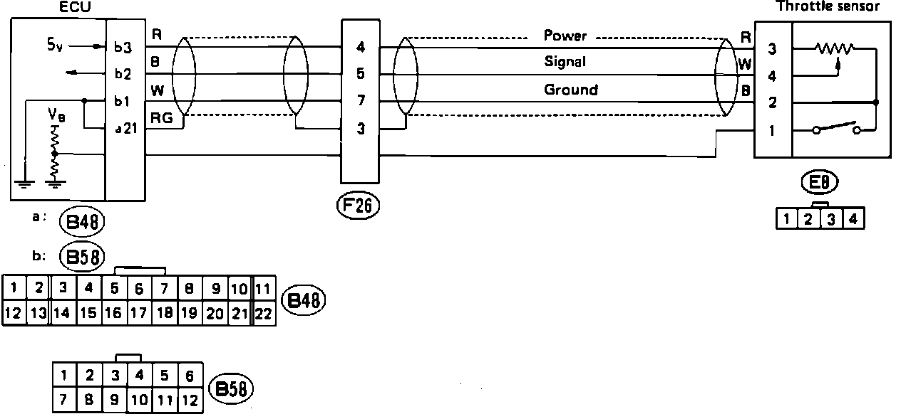 CHECK HARNESS BETWEEN ECU AND THROTTLE SENSOR