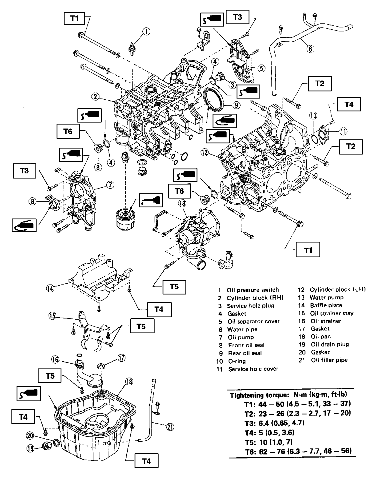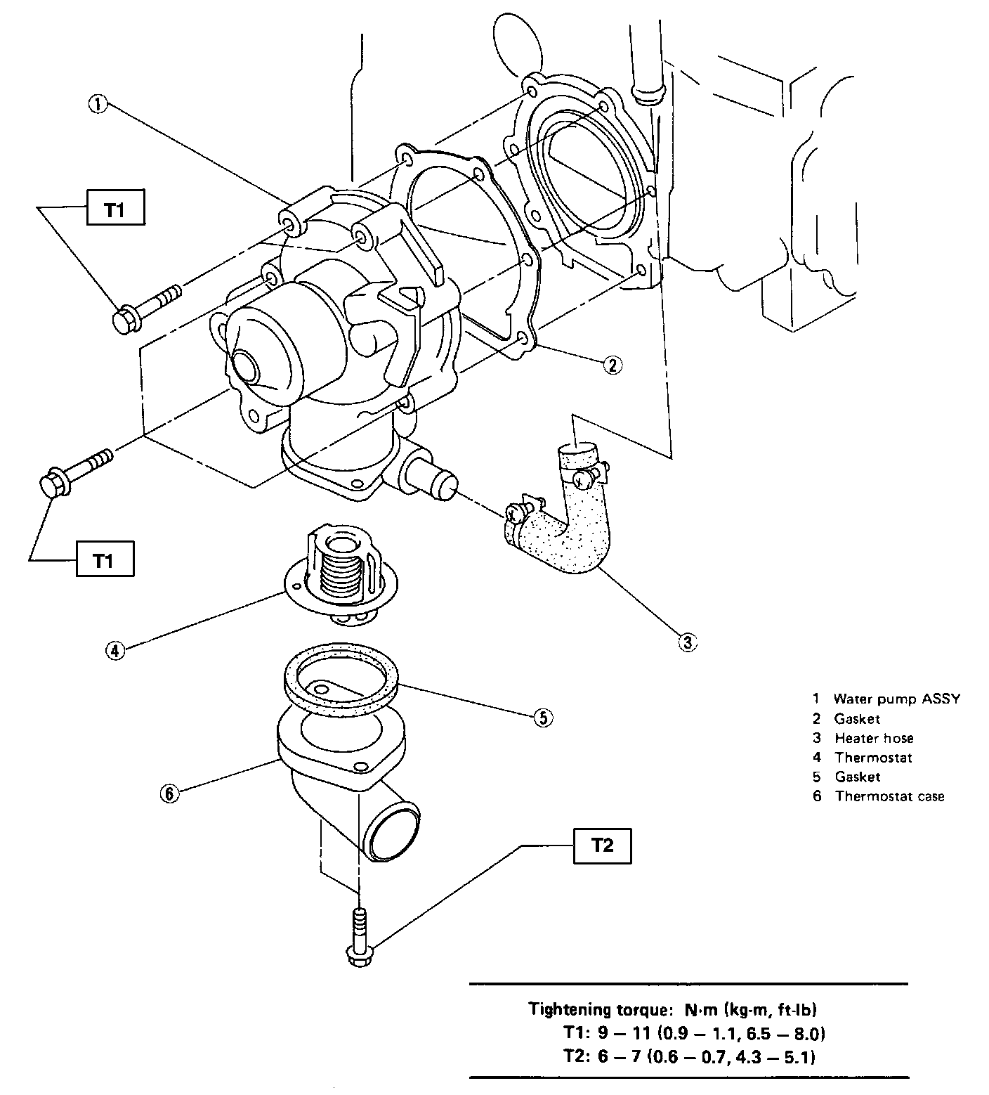 5. Re-tighten bolts (3), (4), (5) and (6) to 20 N.m (2.0 kg-m, 14 ft-lb).