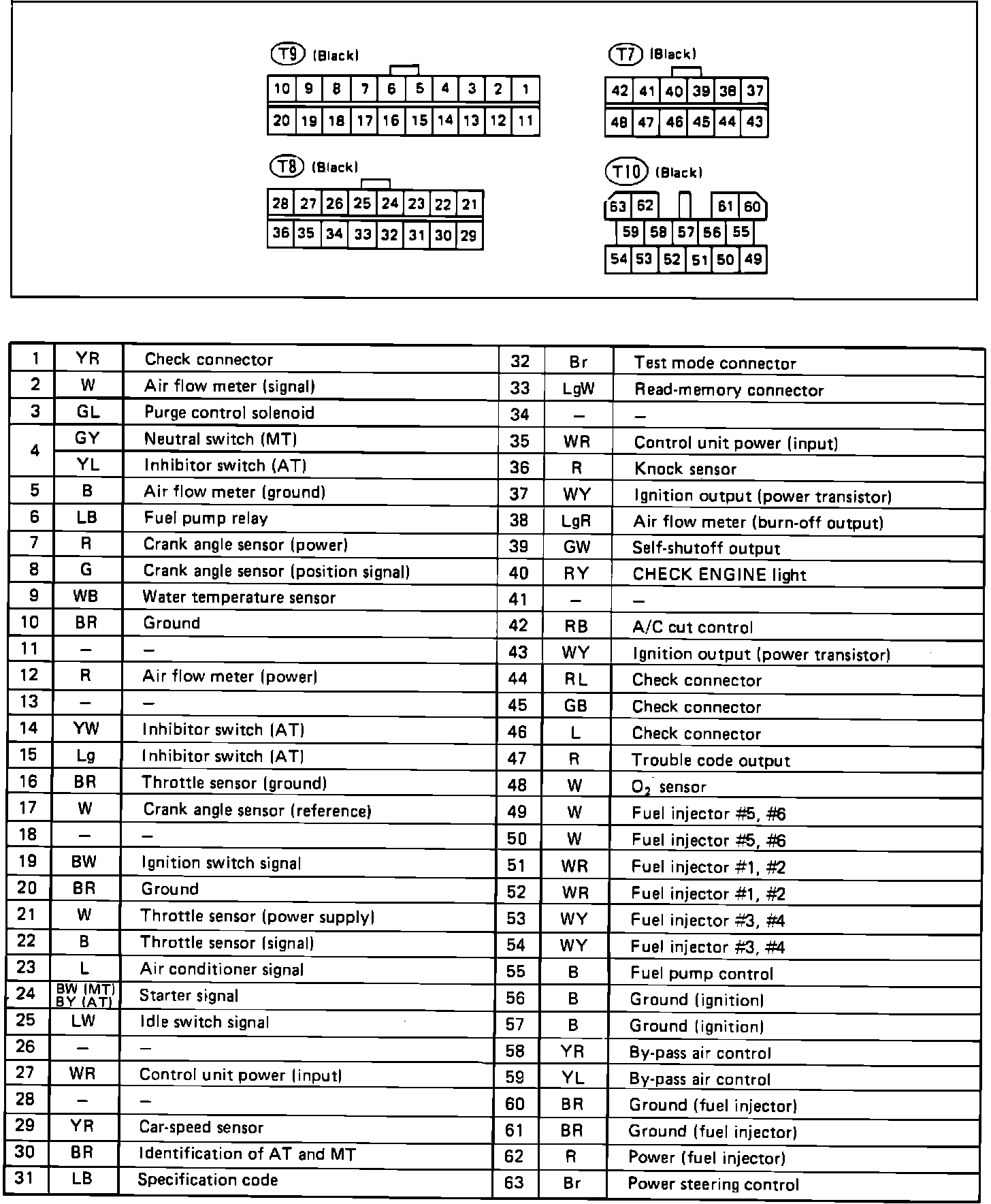 ECU Connector Table: