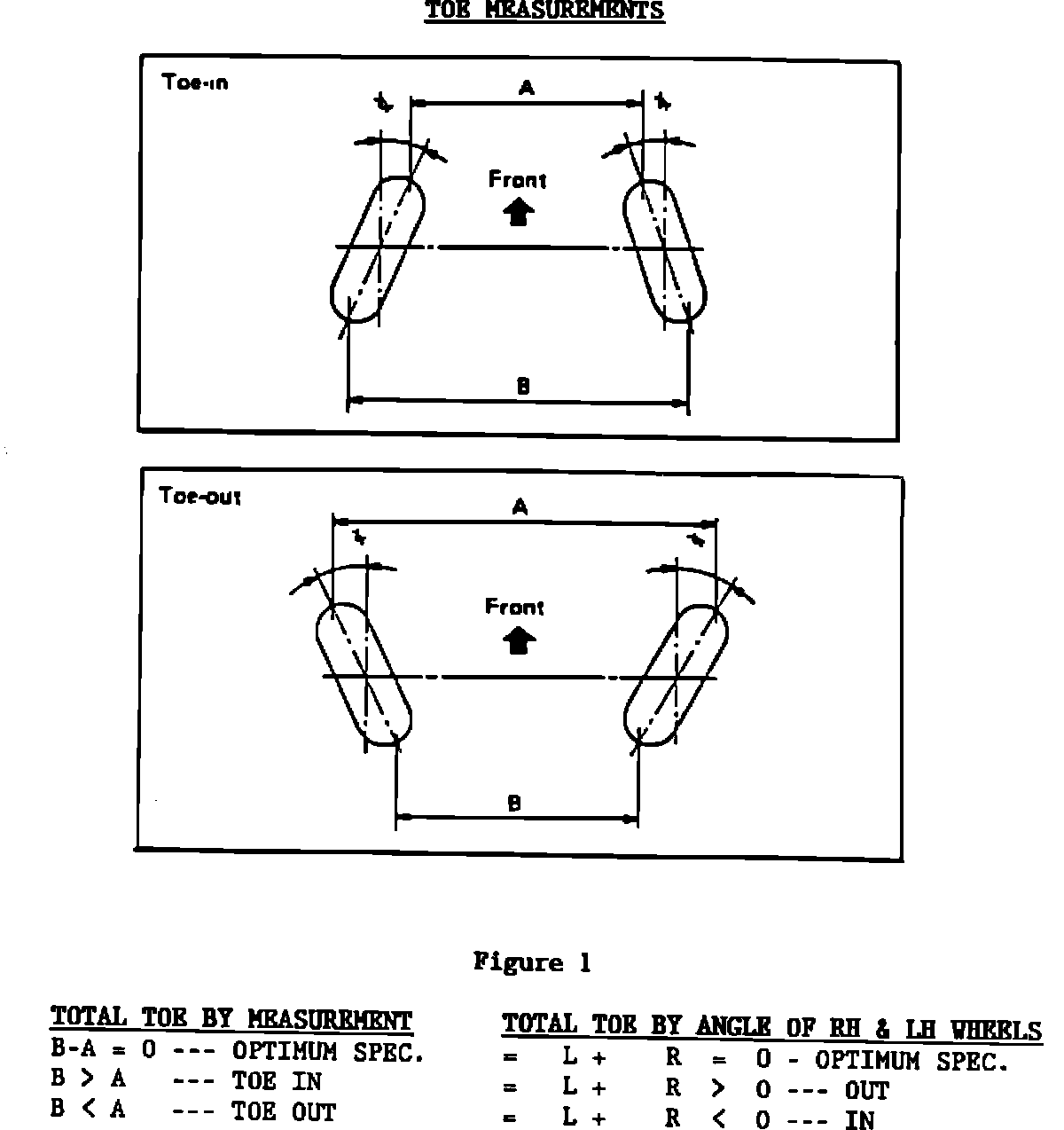 I. Rear wheel toe angles are calculated in total toe which is the sum of both right and left wheel angles per axle. See Figure 1 for measurement points.